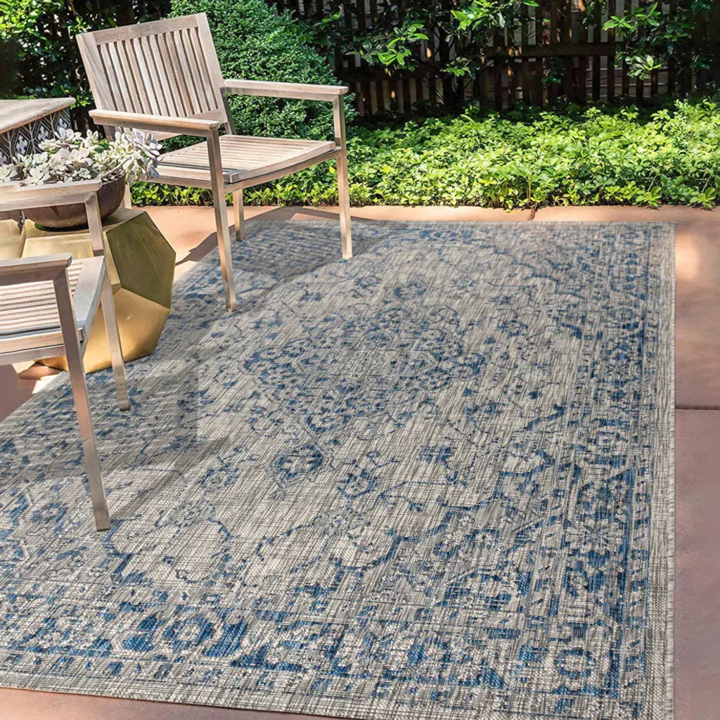 This ornate medallion rug''s lively pattern adds dreamy Bohemian style to an outdoor porch or patio. Varied tones of gray mingled with a blue and navy pattern give this rug a hand-woven, vintage vibe. The flatweave design is great for high-traffic spaces indoors too. Features:• Flat-weave construction of 100% polypropylene• Gray, blue and navy with a handwoven mingled texture• Water resistance with 0.19" pile• 100% Polypropylene• No backing, use of rug pad is recommended (sold separately)• Power Loomed in Turkey• Actual Dimension: 3ft. 11 in. x 6 ft.• Color: Gray/Navy• Thickness measures: 0.19 in.• Available in multiple sizes and/or colorsRug Care:• Durable and easy-care - just sweep or hose down with mild soap and water• Packing and shipping may cause temporary creases in rugs, which will flatten out after a week on the floor; to expedite the process, try back-rolling your rug before laying it down, and then allow ample time for the remaining creases to relax• Please Note: Due to differences in monitors, some rug colors may vary slightly. Lengths and widths may vary from the published dimensions. Patterns may vary slightly according to shape and size selected.About us:Style your floors with JONATHAN Y. By combining fine craftsmanship and design, this New York creative studio is bringing fashion to your floors. The collection mixes sustainable organic materials, vibrant colors and trend worthy styles to create JONATHAN Y''s distinctive catalog of rugs.