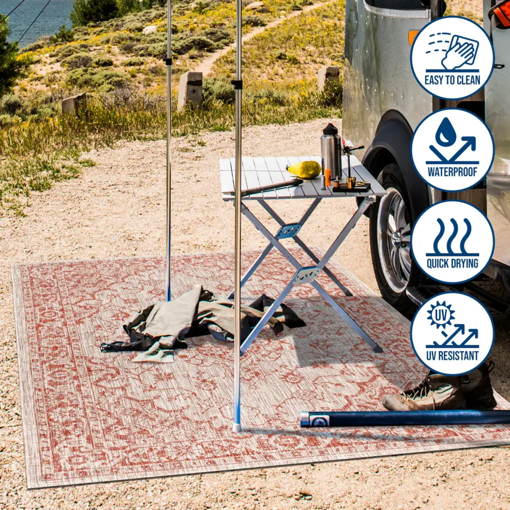 This ornate medallion rug''s lively pattern adds dreamy Bohemian style to an outdoor porch or patio. Varied tones of taupe mingled with a rusty-red pattern give this rug a hand-woven, vintage vibe. The flatweave design is great for high-traffic spaces indoors too. Features:• Flat-weave construction of 100% polypropylene• Red and taupe with a handwoven mingled texture• Water resistance with 0.19" pile• 100% Polypropylene• No backing, use of rug pad is recommended (sold separately)• Power-loomed in Turkey• Actual Dimension: 2 ft. 2 in. X 10 ft.• Color: Red/Taupe• Thickness measures: 0.19 in.• Available in multiple sizes and/or colorsRug Care:• Durable and easy-care - just sweep or hose down with mild soap and water• Packing and shipping may cause temporary creases in rugs, which will flatten out after a week on the floor; to expedite the process, try back-rolling your rug before laying it down, and then allow ample time for the remaining creases to relax• Please Note: Due to differences in monitors, some rug colors may vary slightly. Lengths and widths may vary from the published dimensions. Patterns may vary slightly according to the shape and size selected.About us:Style your floors with JONATHAN Y. By combining fine craftsmanship and design, this New York creative studio is bringing fashion to your floors. The collection mixes sustainable organic materials, vibrant colors and trend-worthy styles to create JONATHAN Y''s distinctive catalog of rugs.