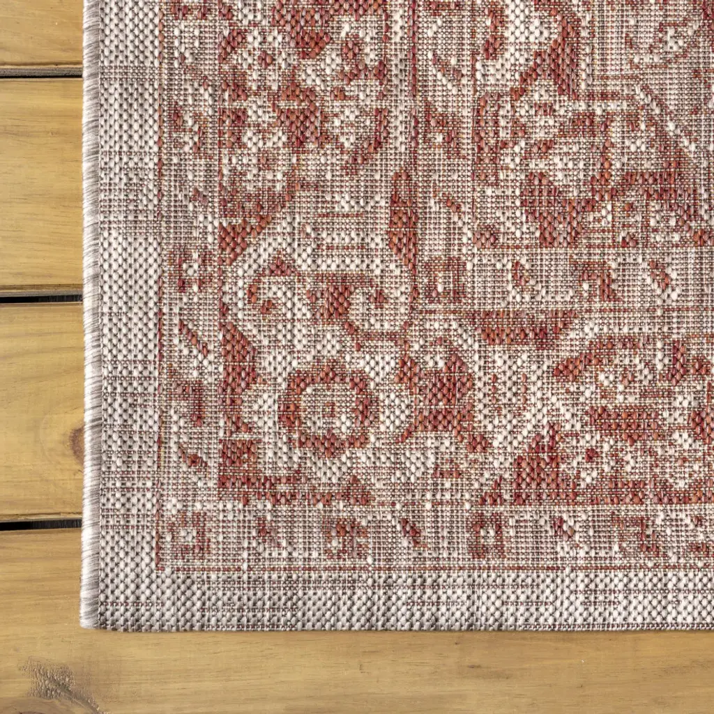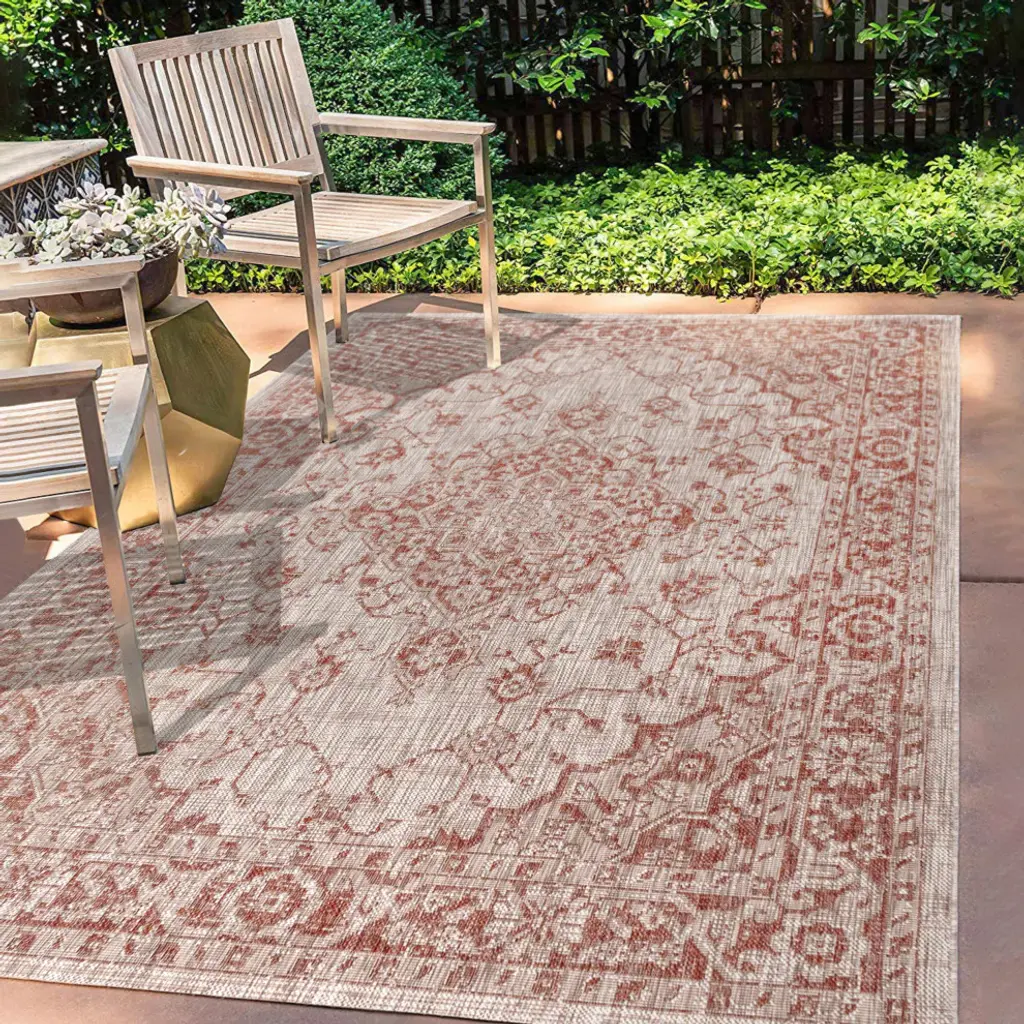 This ornate medallion rug''s lively pattern adds dreamy Bohemian style to an outdoor porch or patio. Varied tones of taupe mingled with a rusty-red pattern give this rug a hand-woven, vintage vibe. The flatweave design is great for high-traffic spaces indoors too. Features:• Flat-weave construction of 100% polypropylene• Red and taupe with a handwoven mingled texture• Water resistance with 0.19" pile• 100% Polypropylene• No backing, use of rug pad is recommended (sold separately)• Power Loomed in Turkey• Actual Dimension: 3ft. 11 in. x 6 ft.• Color: Red/Taupe• Thickness measures: 0.19 in.• Available in multiple sizes and/or colorsRug Care:• Durable and easy-care - just sweep or hose down with mild soap and water• Packing and shipping may cause temporary creases in rugs, which will flatten out after a week on the floor; to expedite the process, try back-rolling your rug before laying it down, and then allow ample time for the remaining creases to relax• Please Note: Due to differences in monitors, some rug colors may vary slightly. Lengths and widths may vary from the published dimensions. Patterns may vary slightly according to shape and size selected.About us:Style your floors with JONATHAN Y. By combining fine craftsmanship and design, this New York creative studio is bringing fashion to your floors. The collection mixes sustainable organic materials, vibrant colors and trend worthy styles to create JONATHAN Y''s distinctive catalog of rugs.