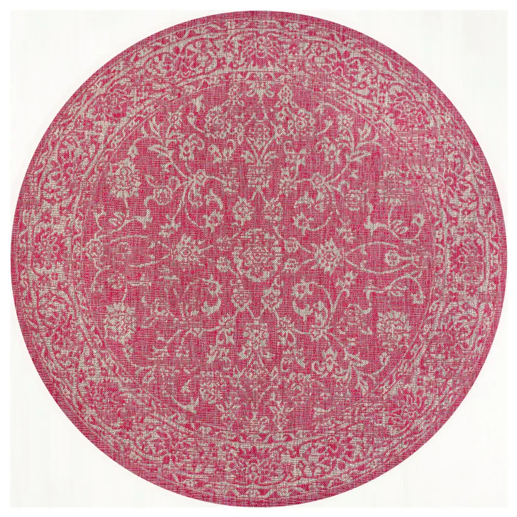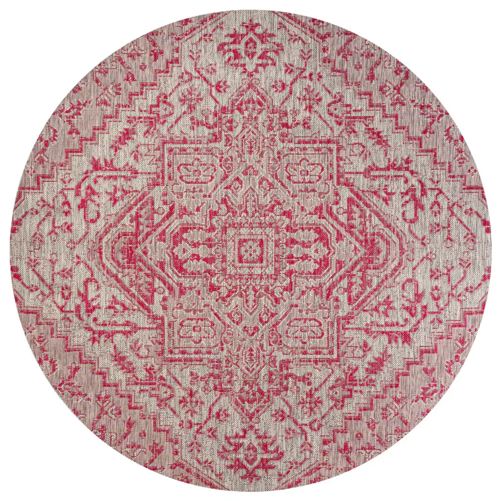 This ornate medallion rug''s lively pattern adds dreamy Bohemian style to an outdoor porch or patio. Varied tones of taupe mingled with a rusty-red pattern give this rug a hand-woven, vintage vibe. The flatweave design is great for high-traffic spaces indoors too. Features:• Flat-weave construction of 100% polypropylene• Red and taupe with a handwoven mingled texture• Water resistance with 0.19" pile• 100% Polypropylene• No backing, use of rug pad is recommended (sold separately)• Power Loomed in Turkey• Actual Dimension: 5 ft. 3 in. x 5 ft. 3 in. Round• Color: Red/Taupe• Thickness measures: 0.19 in.• Available in multiple sizes and/or colorsRug Care:• Vacuum regularly and spot clean as needed; avoid direct and continuous exposure to sunlight; use brushless vacuum; remove spills immediately; if liquid, blot with clean, undyed cloth by pressing firmly around the spill to absorb as much as possible; for hard to remove stains, professional rug cleaning is recommended; store in a dry, well ventilated area and rotate for consistent wear• Packing and shipping may cause temporary creases in rugs, which will flatten out after a week on the floor; to expedite the process, try back-rolling your rug before laying it down, and then allow ample time for the remaining creases to relax• Please Note: Due to differences in monitors, some rug colors may vary slightly. Lengths and widths may vary from the published dimensions. Patterns may vary slightly according to shape and size selected.About us:Style your floors with JONATHAN Y. By combining fine craftsmanship and design, this New York creative studio is bringing fashion to your floors. The collection mixes sustainable organic materials, vibrant colors and trend worthy styles to create JONATHAN Y''s distinctive catalog of rugs.