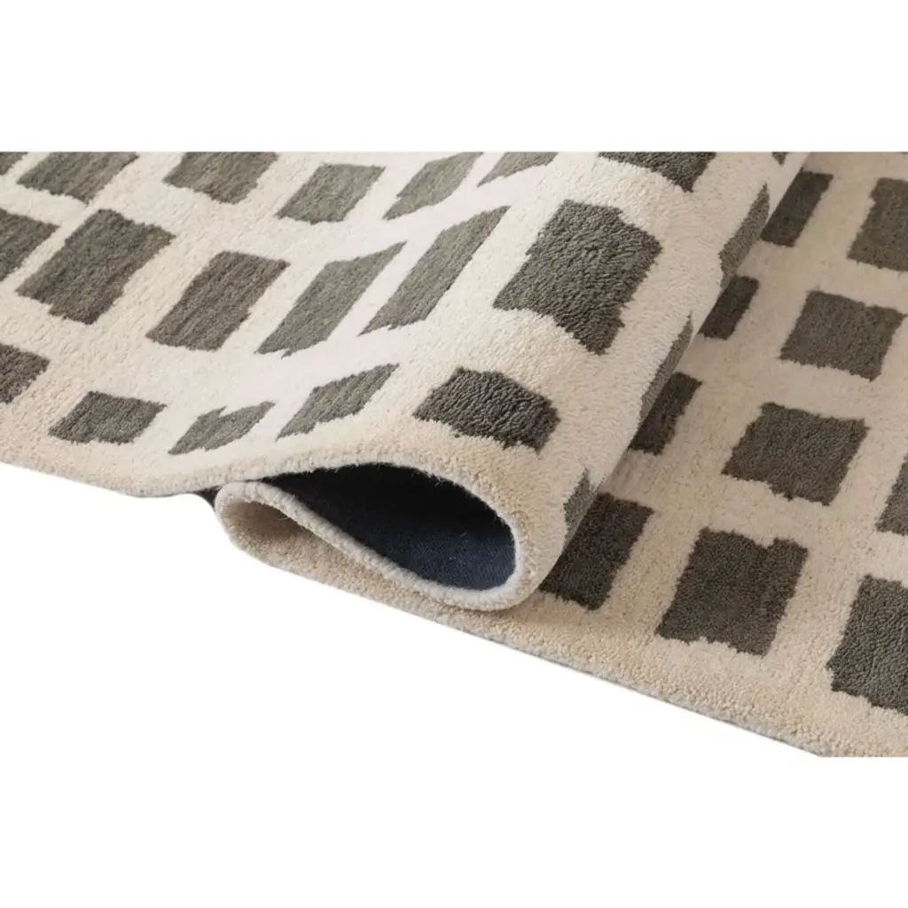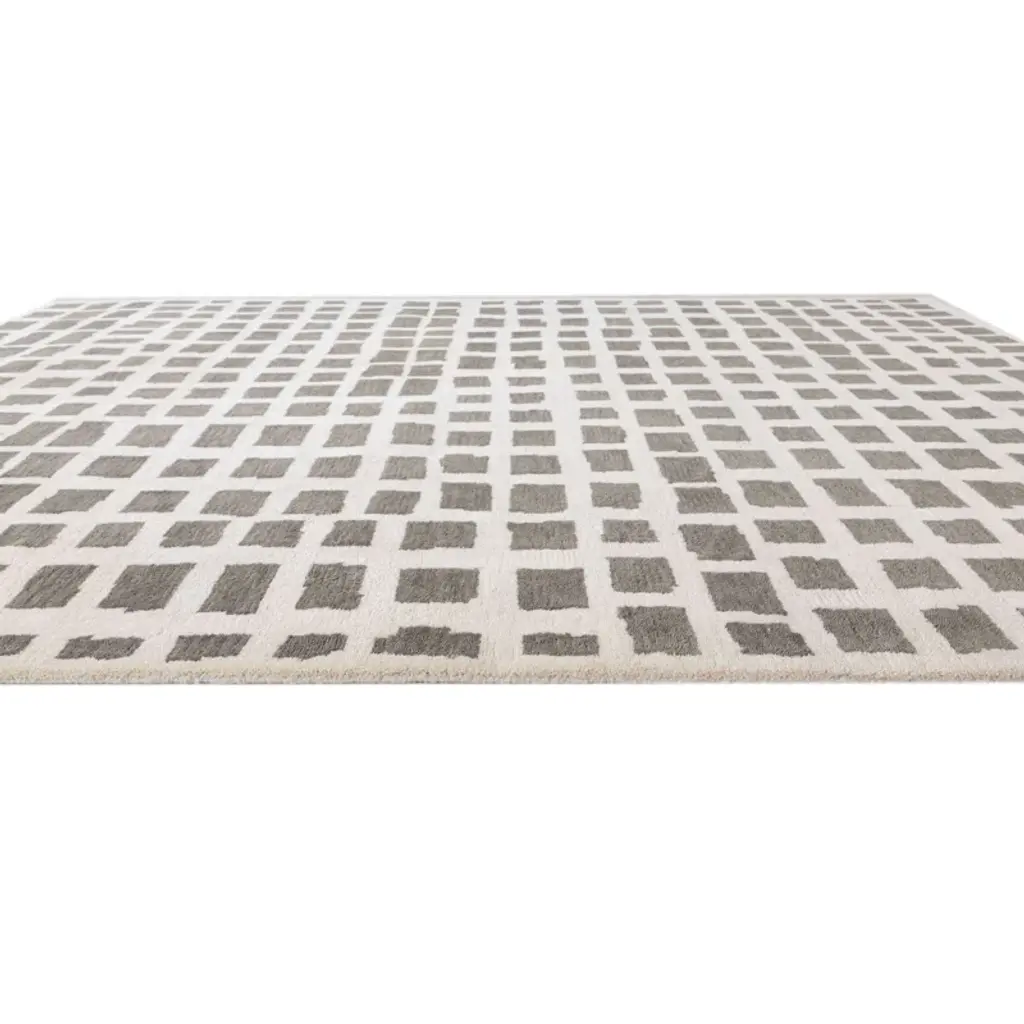 This hand-tufted wool rug features an abstract grid pattern with a contemporary edge, making it a striking addition to modern interiors. The cut pile construction enhances the design’s depth and creates a smooth, plush texture underfoot. A neutral beige base is accented with irregular charcoal blocks, giving the rug a hand-drawn, artistic feel. Crafted from 100% wool, this rug offers a soft yet durable surface, making it ideal for living rooms, bedrooms, and stylish office spaces.