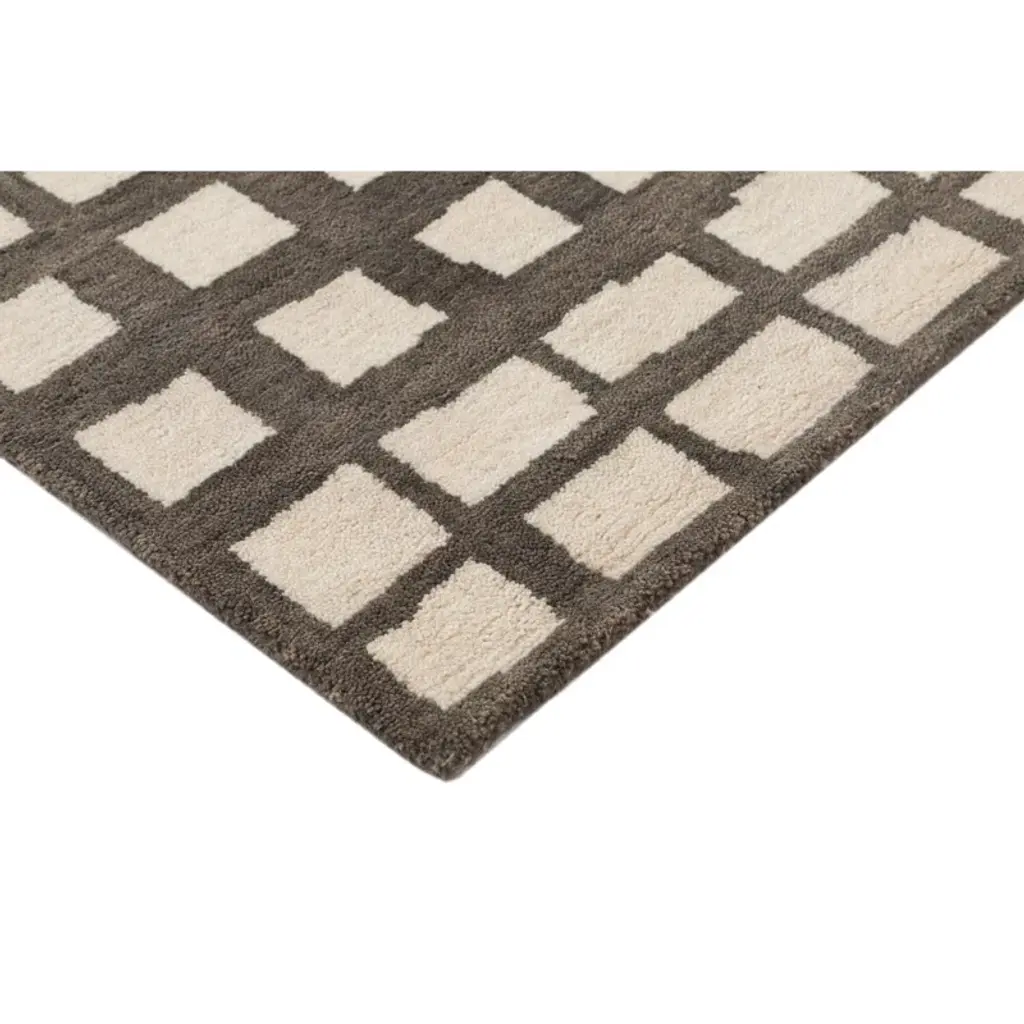 This hand-tufted wool rug features an abstract grid pattern with a contemporary edge, making it a striking addition to modern interiors. The cut pile construction enhances the design’s depth and creates a smooth, plush texture underfoot. A neutral beige base is accented with irregular charcoal blocks, giving the rug a hand-drawn, artistic feel. Crafted from 100% wool, this rug offers a soft yet durable surface, making it ideal for living rooms, bedrooms, and stylish office spaces.