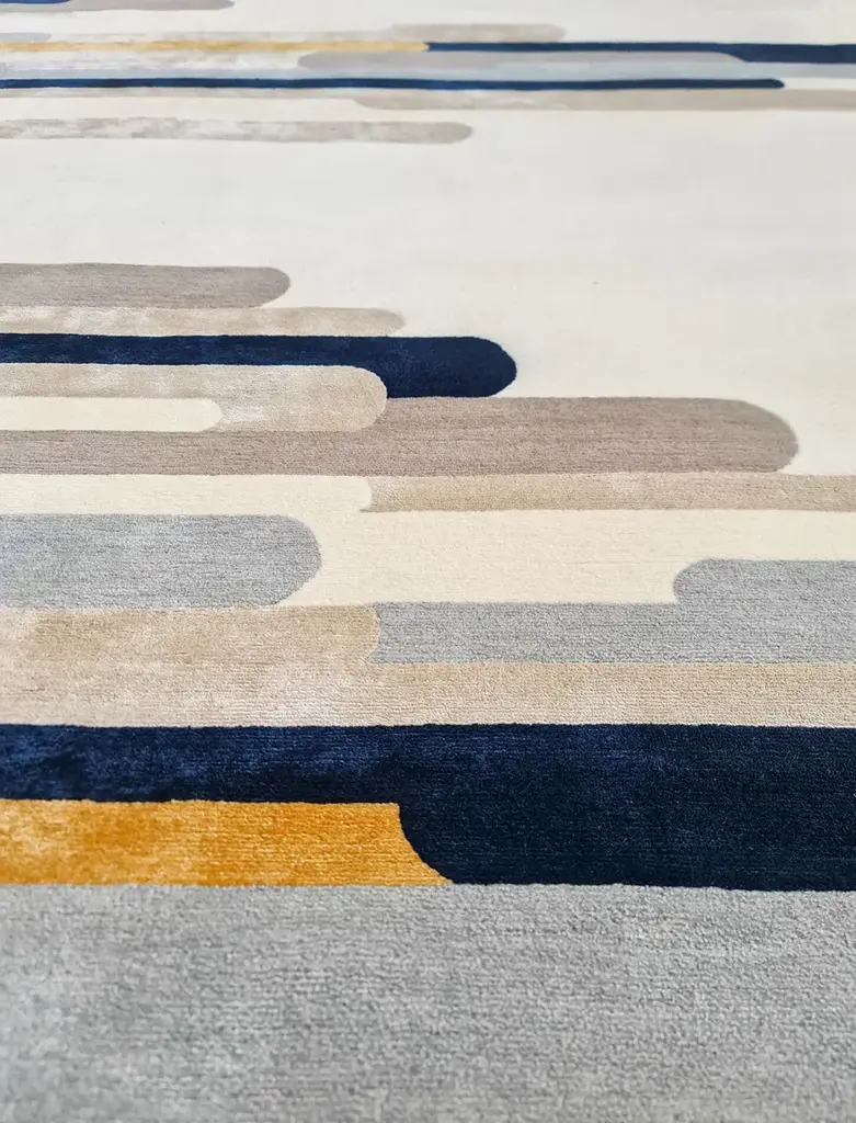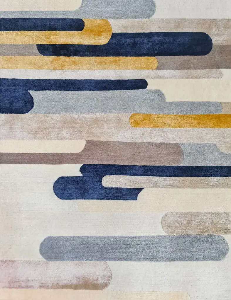 Material: Wool, SilkKnot Density: 60 knots/inch²Pile Height: 6mmTechnique: Hand-knottedCustom sizes and colors on requestThe Ambiance Collection was born from a travel journal, notes of textures, colors, and materials, of which the imprint in memory slowly fades, synthesizes, and crystallizes into new forms. These hand-knotted rugs are made from high-quality silk and New Zealand wool and feature graphic lines and geometric patterns playing on different levels of contrast to add a dynamic touch. The collection is available in rectangular shapes and four standard sizes; the color combination includes warm, pastel, and neutral tones, making it easy to find the perfect match for every interior design project.