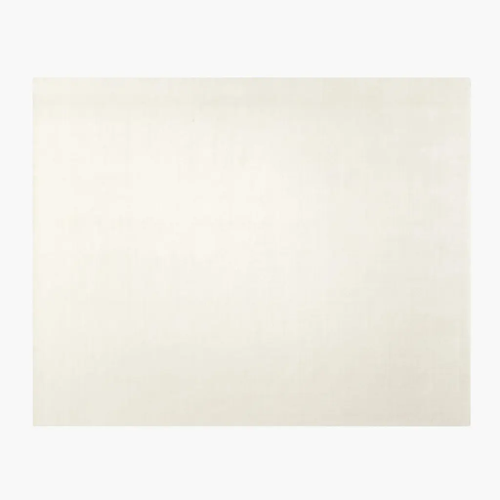 Handloomed by skilled artisans, New Zealand wool rug is distinguished by its lush softness, warm luster and subtle melange effect that's reminiscent of Merino wool. Recycled wool yarns are loomed into a dense ivory pile with an overall effect that reminds us of high-end menswear designs. CB2 exclusive.How will it look in your room? 12"x12" rug samples are available in stores for a fee refundable upon return of the sample.