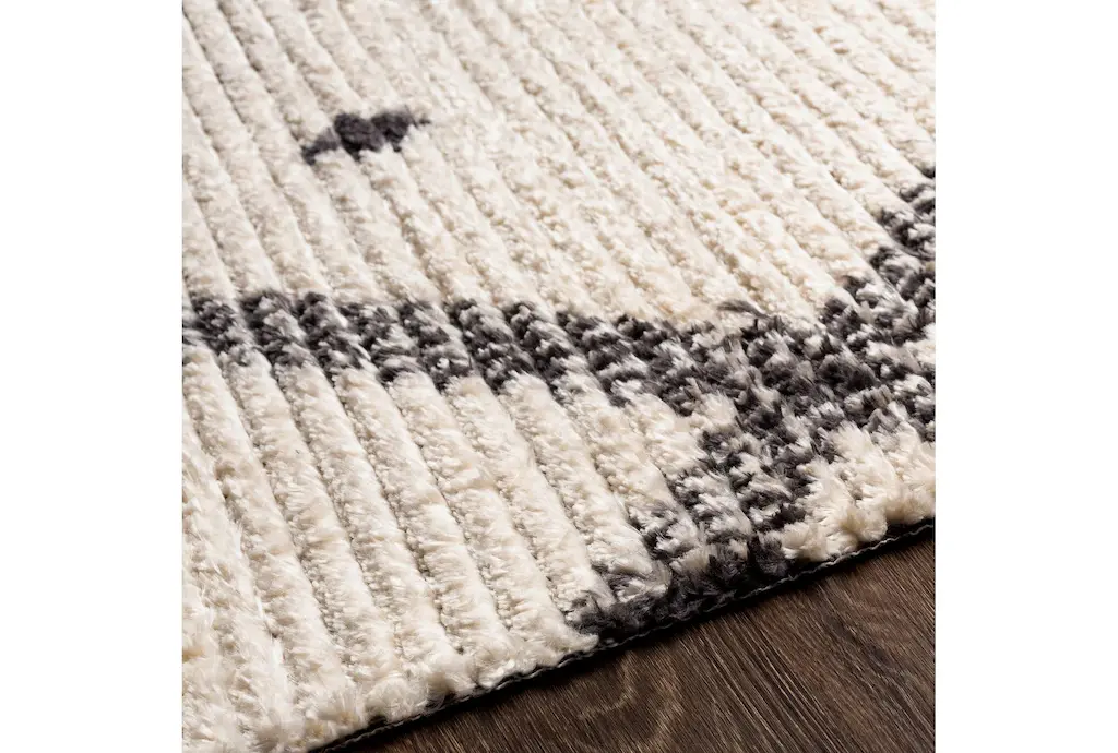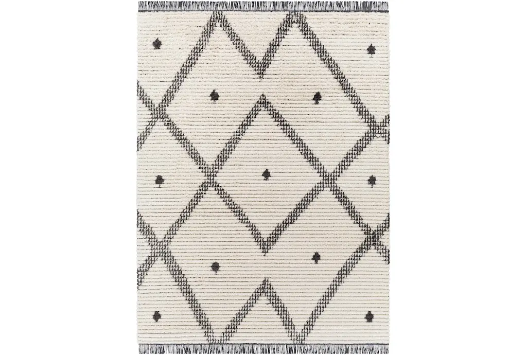 Rug-5'3"x7' Rufino Boho Diamond With Fringe Black/cream By Surya