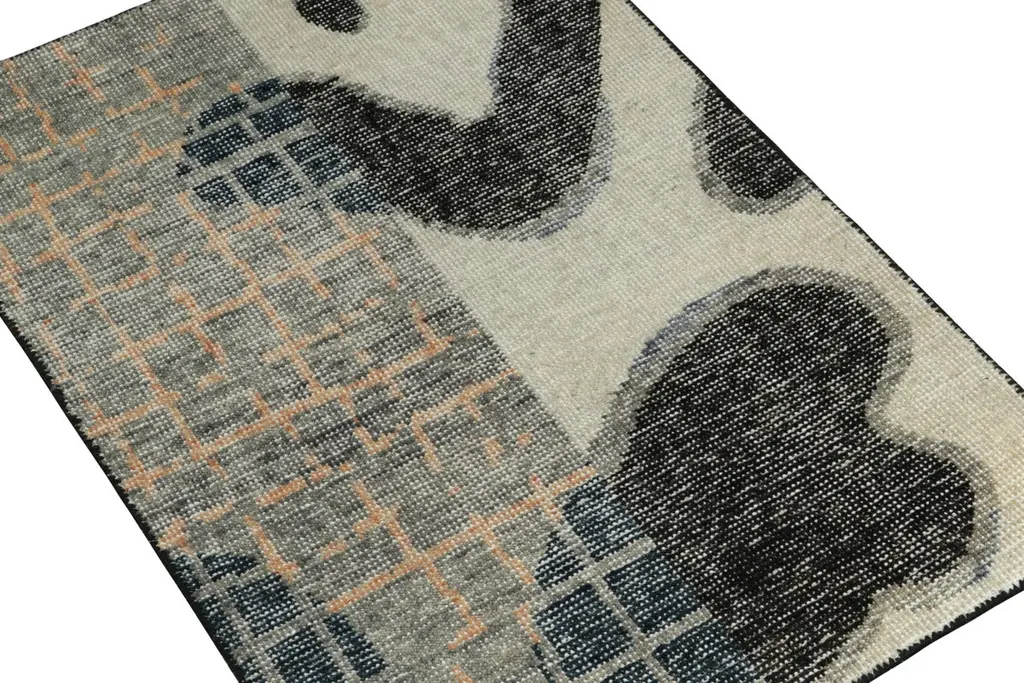 Rug & Kilim’s Distressed Style Gift-Size Abstract Rug In Gray, White And Black