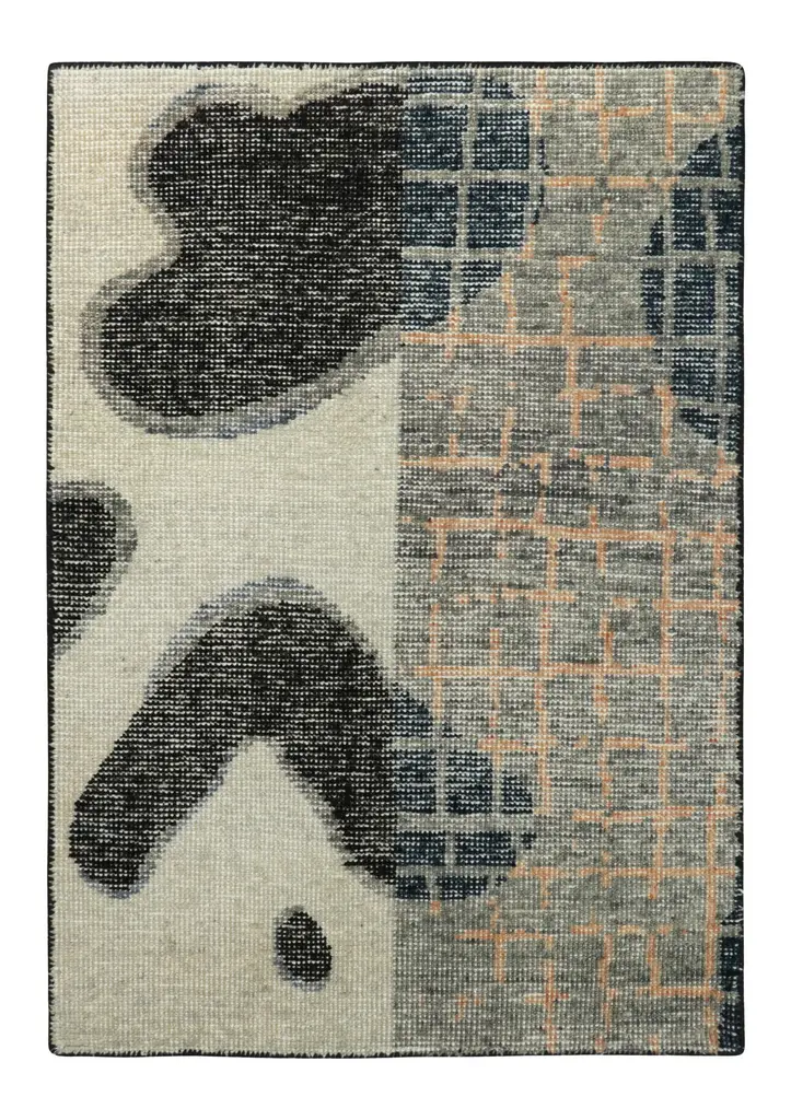 This 2x3 rug hails from the gift-size selections of Rug & Kilim’s Homage Collection, remarking a bold take on distressed style. This design evokes abstract moods with expressionist geometry in black, white, gray and blue.An ideal choice in accent rugs, throw rugs, bathrooms, hallways, entryways, laundry rooms, tables, ottomans, and other small spaces.