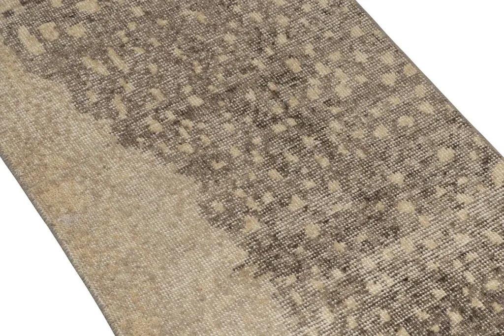 This 2x3 rug hails from the gift-size selections of Rug & Kilim’s Homage Collection, remarking a bold take on distressed style. This design evokes painterly abstract styles in comfortable beige-brown and gray notes, naturally complementing the shabby-chic texture.An ideal choice in accent rugs, throw rugs, bathrooms, hallways, entryways, laundry rooms, tables, ottomans, and other small spaces.