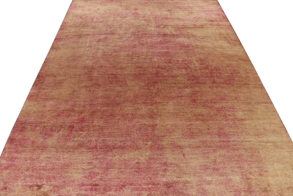 Hand-knotted in fine, luxurious silk, a fabulous 12'x17' oversized rug from Rug & Kilim’s most brilliant textural works. On the Design: The field enjoys a rhapsody of colors playing vibrant tones of red, orange & gold with a striae and abrashes. A keen eye will note the silk’s natural sheen, lending a brilliant play of the late to such warm, graphic hues. Exemplifying our innovative take on textural aesthetics, a masterful palace-size carpet seldom seen in such aesthetics.