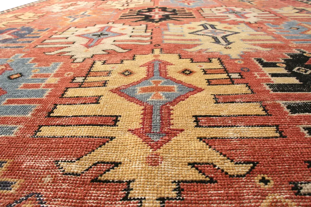 This 12x14 oversized rug design is an exciting new addition to the Homage Collection by Rug & Kilim—an encyclopedia of styles transformed by texture. The piece is hand-knotted in low-pile wool in a fabulous contemporary take on a distressed, boho-chic look. It’s an easy-to-maintain, comfortable construction that recaptures any classic or modern style with a fresh, approachable air. Care Instructions: Dust and vacuum regularly. In case of spill, mix clear shampoo with dish soap in warm/hot water for best spot removal.