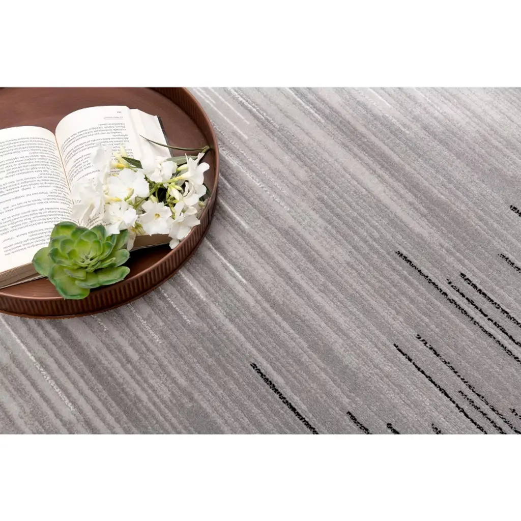 Rug Branch Montage Contemporary Abstract Lines Black Grey Indoor Area Rug - 2' X 4'