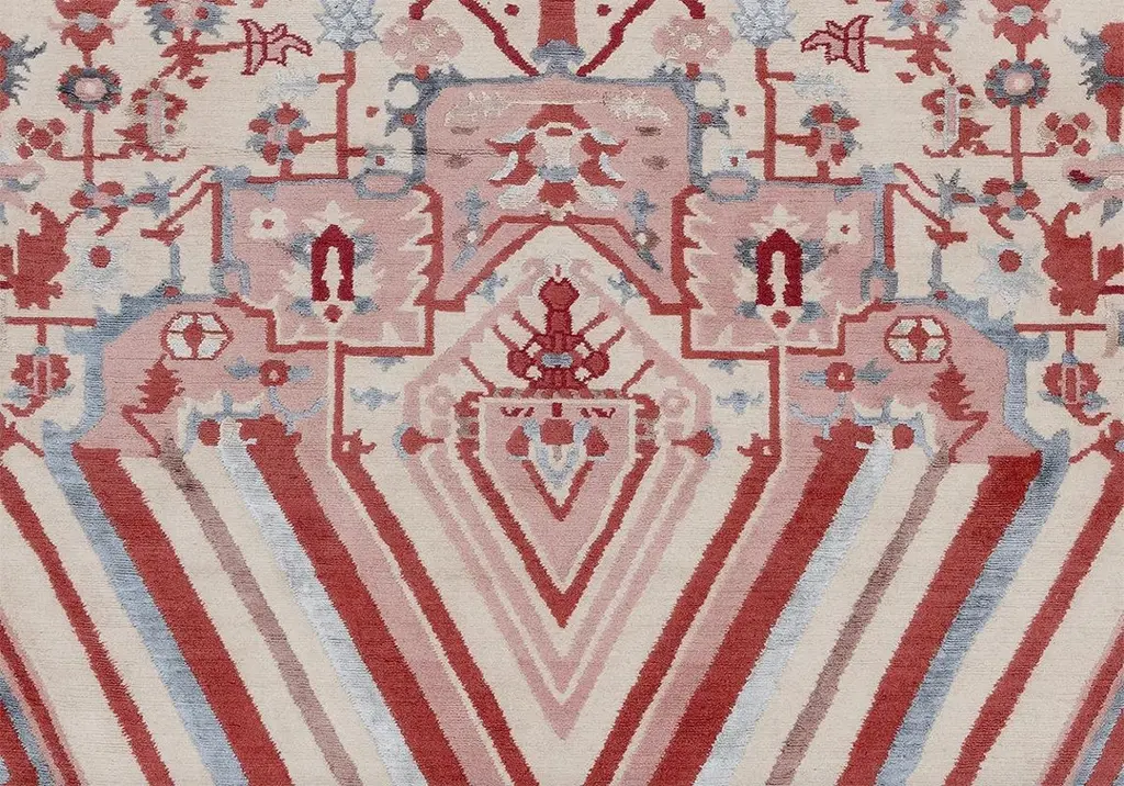 Rug Evolution 1 In Himalayan Wool And Silk, Red, Beige