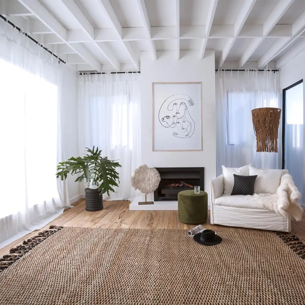 The river weave mixes rugged hemp with luxe cotton and a subtle touch of gold to elevate its earthy texture. This renewable fibre style is available with/without tassels.All ground control rugs are hand-loomed to order. Please allow 6 weeks for delivery. Composition: Hemp 60%, cotton 35%, Lurex 5%.