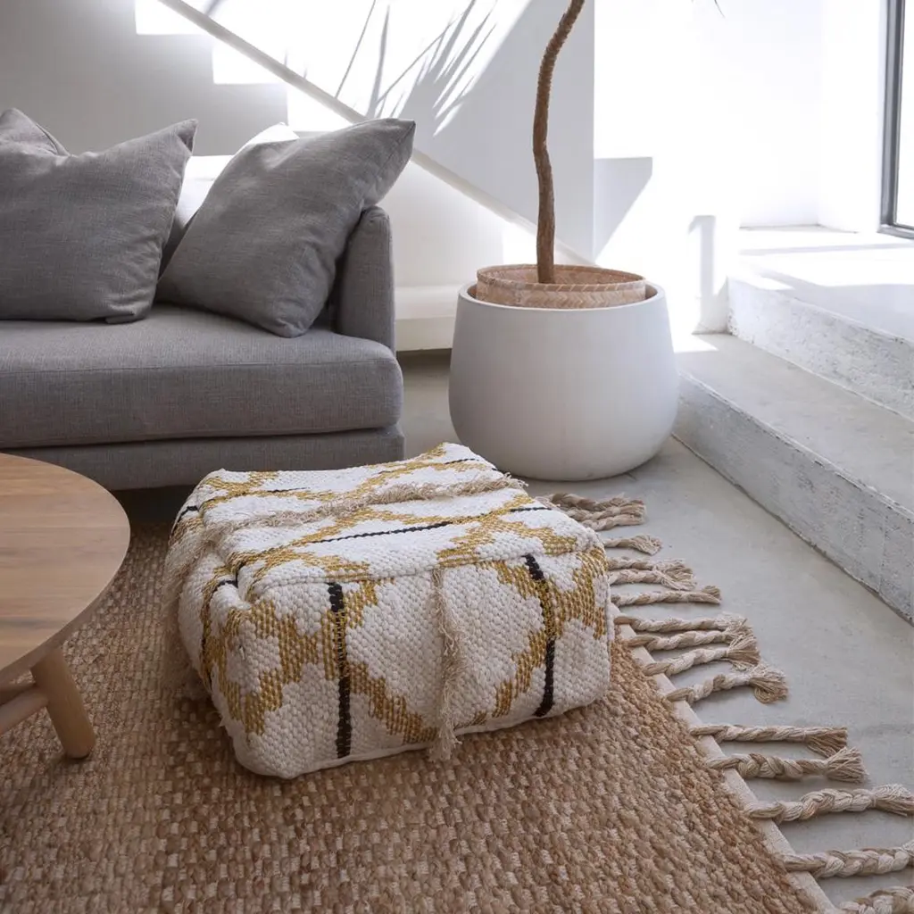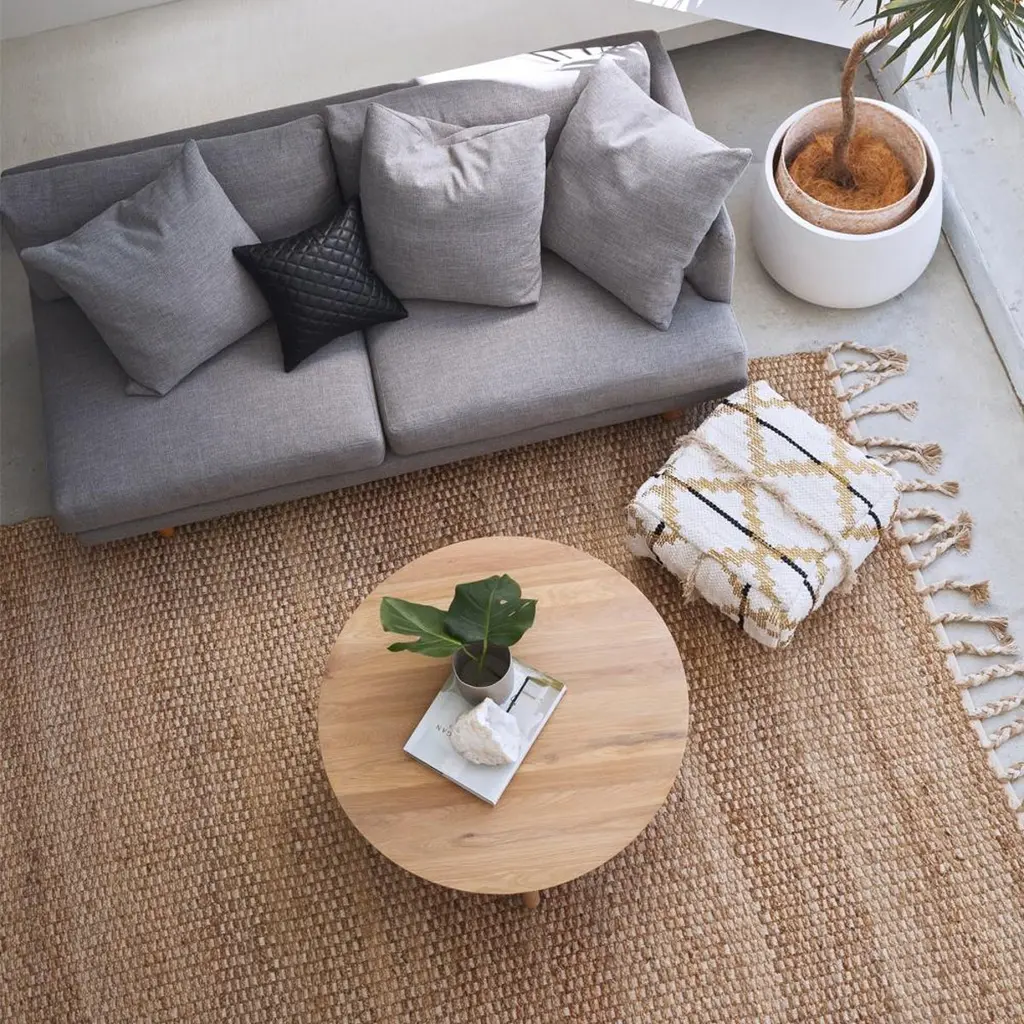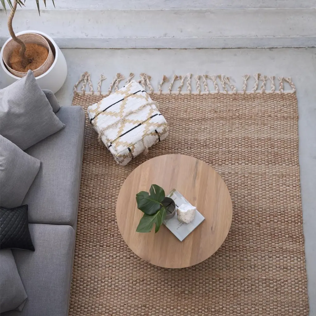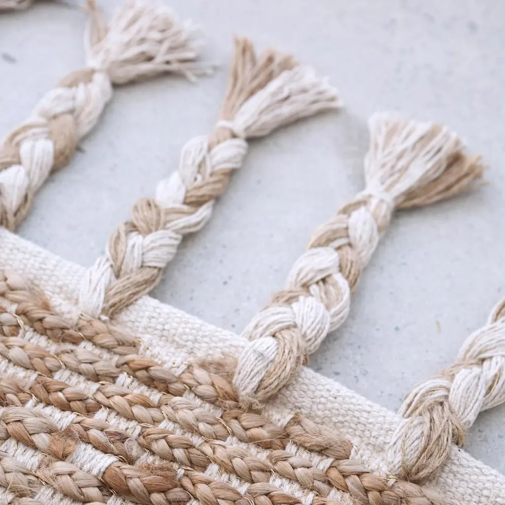The river weave mixes rugged hemp with luxe cotton and a subtle touch of gold to elevate its earthy texture. This renewable fibre style is available with/without tassels.All ground control rugs are hand-loomed to order. Please allow 6 weeks for delivery. Composition : Hemp 60% – Cotton 35% – Lurex 5%.