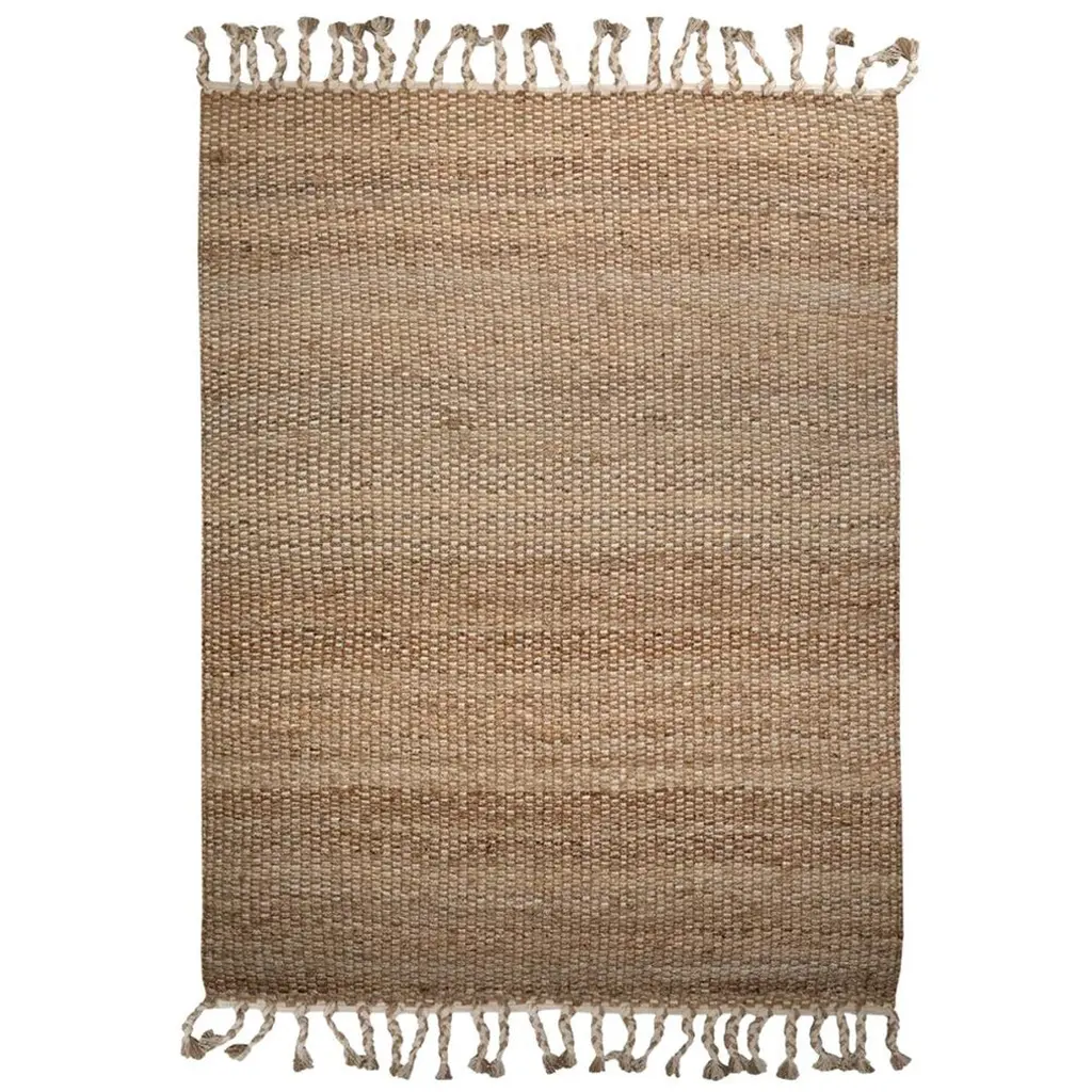The river weave mixes rugged hemp with luxe cotton and a subtle touch of gold to elevate its earthy texture. This renewable fibre style is available with/without tassels.All ground control rugs are hand-loomed to order. Please allow 6 weeks for delivery. Composition: Hemp 60%, cotton 35%, lurex 5%.