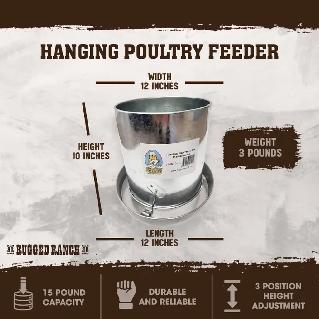 Rugged Ranch Products Ruggegg Ranch 15 Pound Capacity Versatile And Space Saving Hanging Galvanized Poultry Feeder With 3 Position Height Adjustment