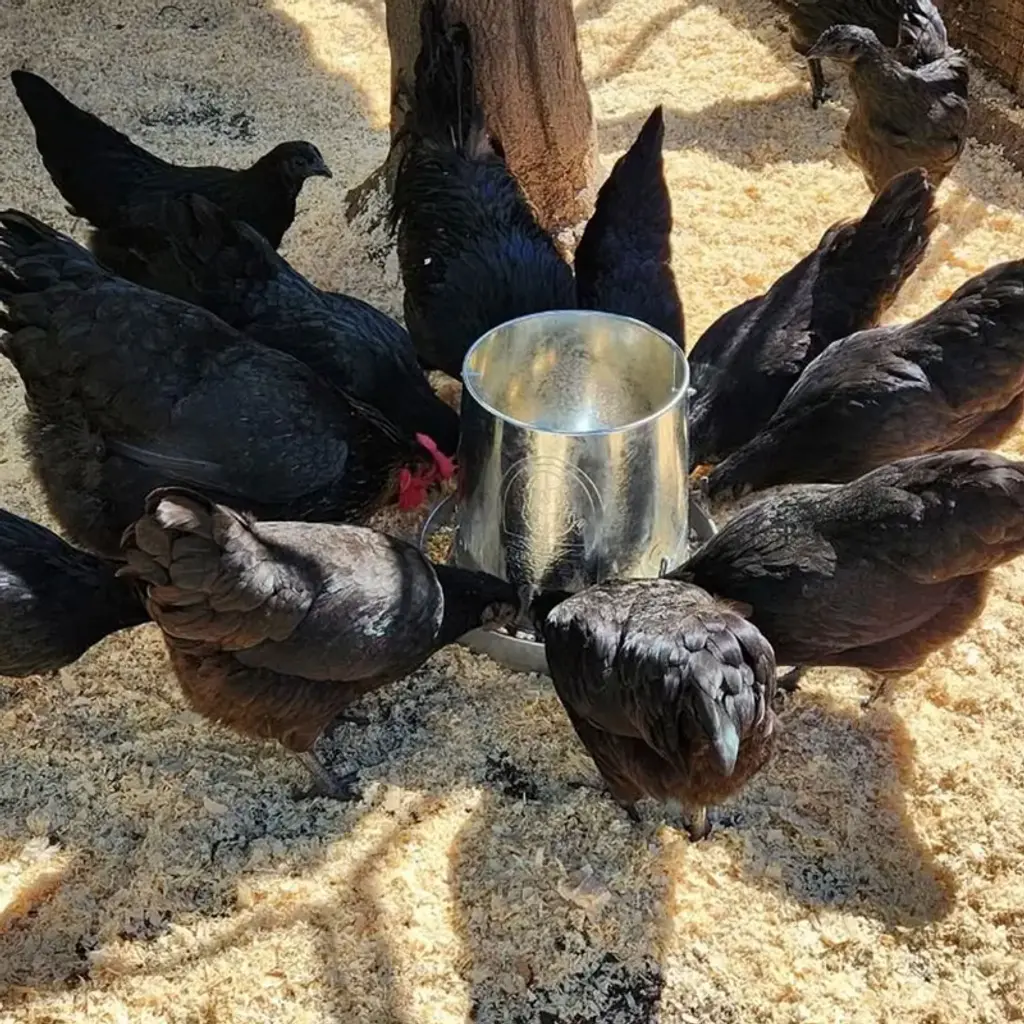Enhance your poultry care routine with the Rugg 'Egg' Ranch Hanging Galvanized Poultry Feeder from Rugged Ranch Products. With a convenient 15-pound capacity, it simplifies daily feeding tasks, ensuring your feathered friends stay well-nourished without the constant need for refilling. Versatility is a key feature of this feeder as it flexibly hangs or sits on the ground, catering to various spaces and bird types, making it an ideal choice for diverse poultry enthusiasts. Engineered to minimize spillage and maximize efficiency, this feeder ensures that your feathered companions enjoy their meals without leaving behind a mess. The included 3-position height adjustment tension arm further enhances stability, stopping accidental spills and keeping the feeder securely in place. Convenience extends beyond functionality with the thoughtful addition of a hanging handle. This feature makes transportation and installation a breeze and adds an extra layer of accessibility to your poultry care routine. Constructed from robust galvanized metal, it withstands the rigors of daily use and varying weather conditions, ensuring it remains a reliable and long-lasting addition to your poultry setup. Bring efficiency and ease to your daily poultry routine with the Rugg 'Egg' Ranch Hanging Galvanized Poultry Feeder from Rugged Ranch Products.