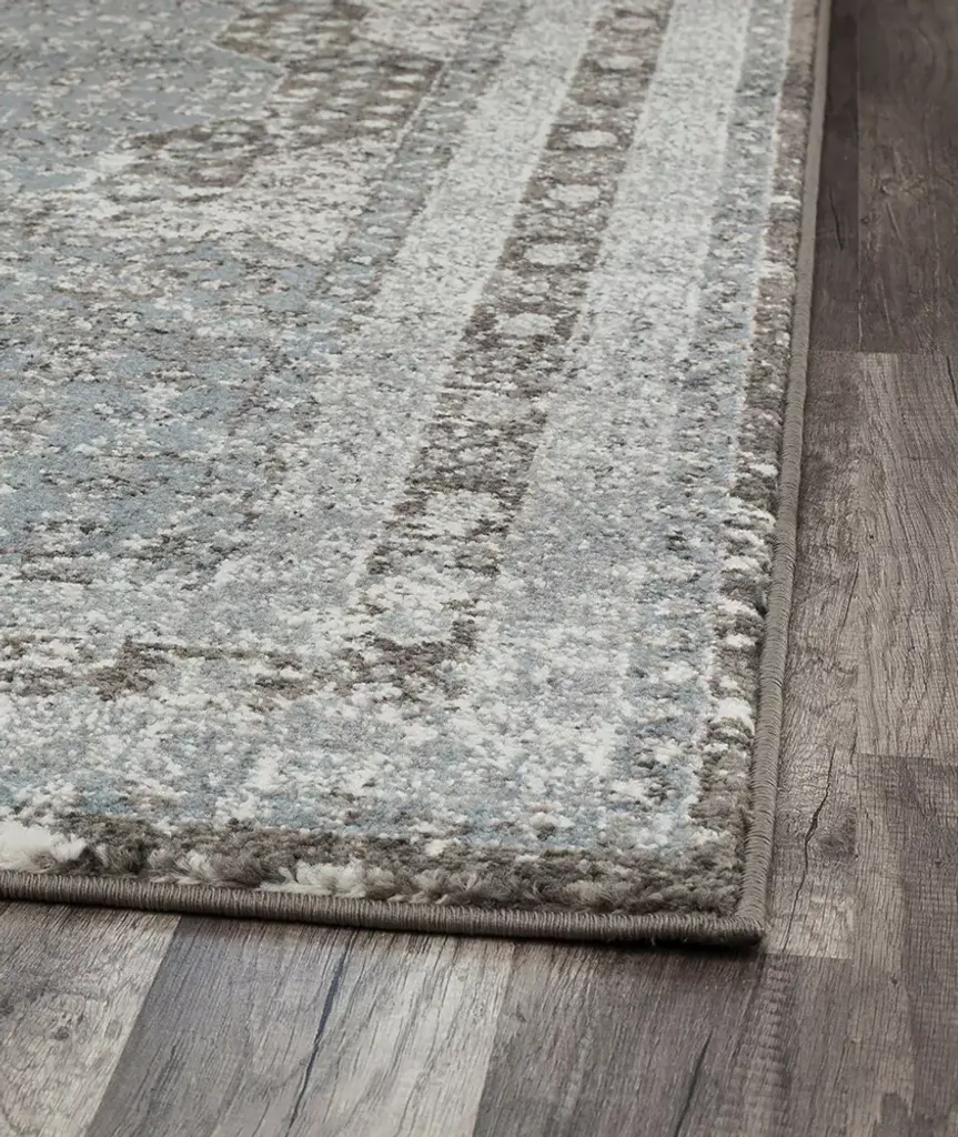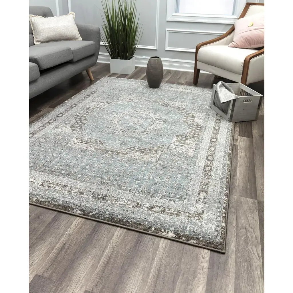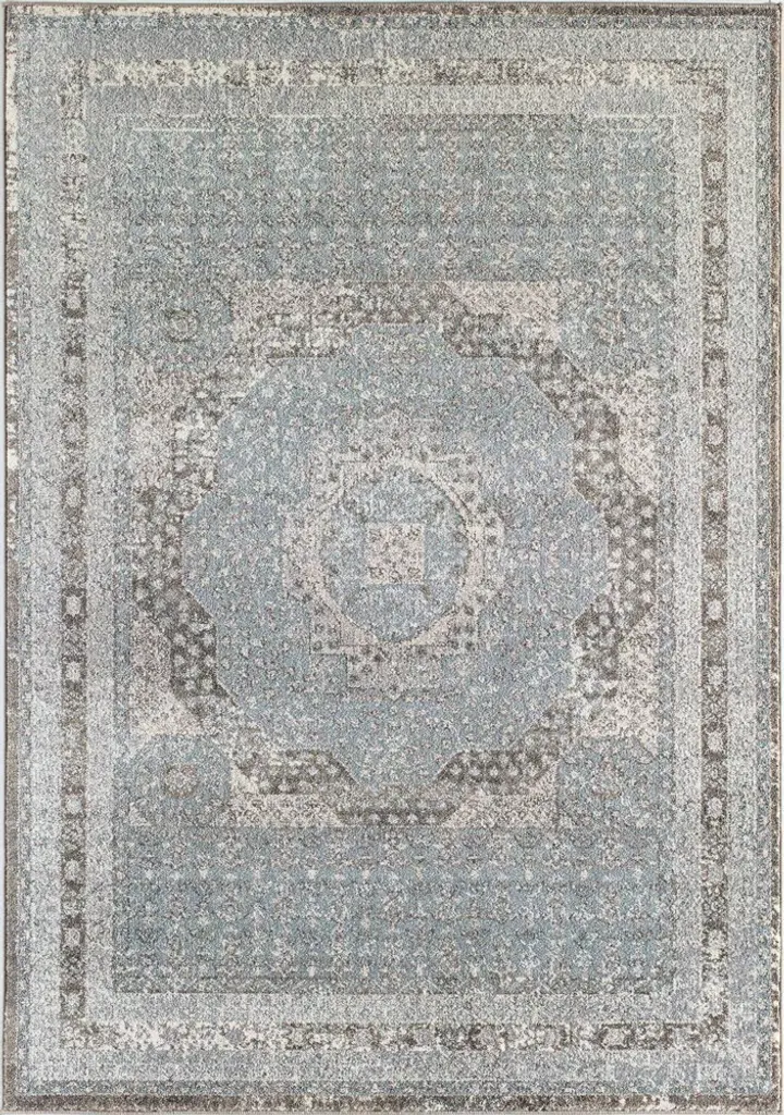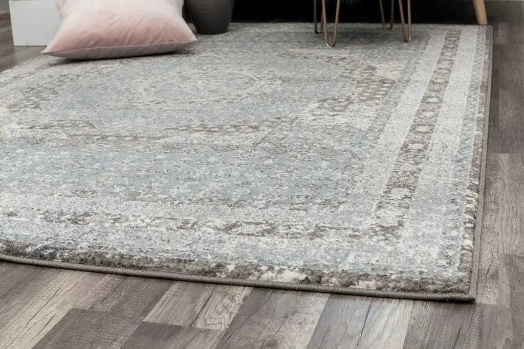 Style is personal and not everyone will like the same thing, but this blue and grey beauty will be one piece everyone can agree on. Made from polypropylene and power-loomed, its half-inch pile is shiny, soft, and durable. The vintage-style motif can work cohesively within both traditional and modern settings. Why argue when you can come together in admiration of this exceptional rug?