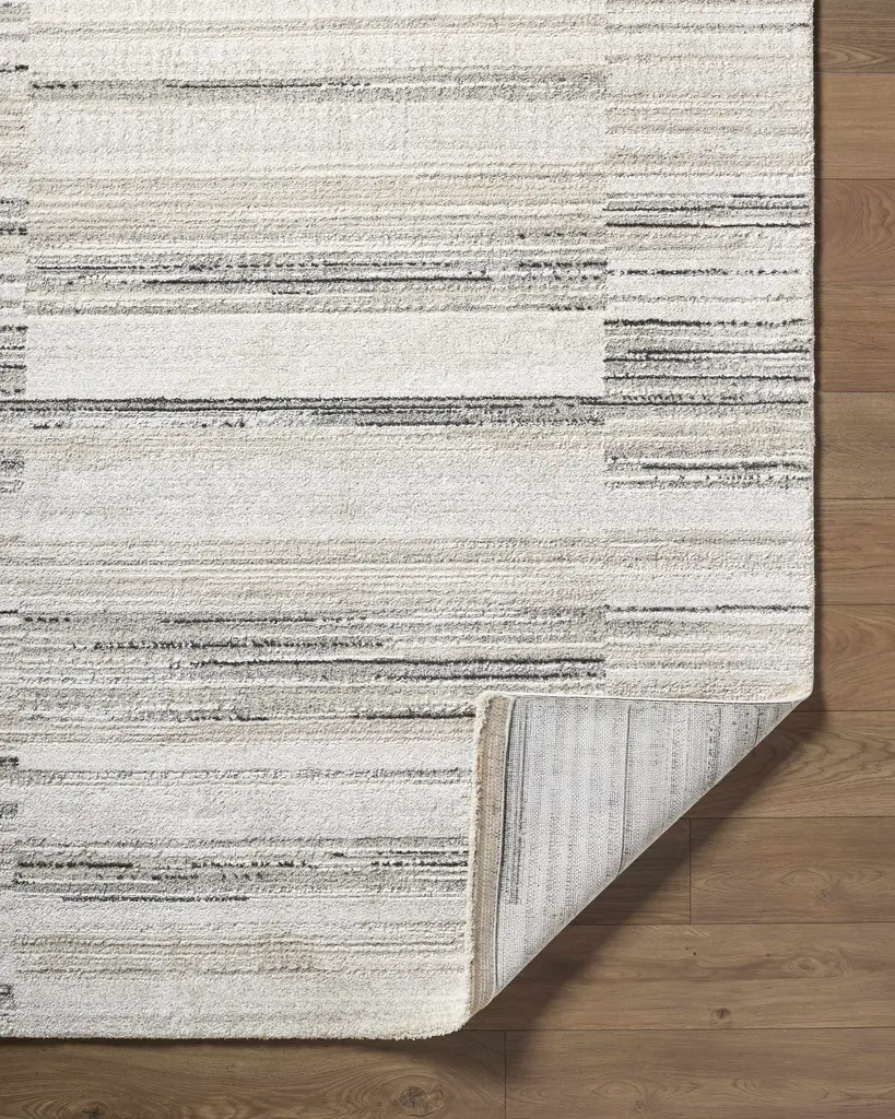 Collection: Rumer Colors: White, Cream, Black, LightBeige, LightSlate Construction: Machine Woven Material: 55% Polyester,45% Polypropylene Pile: High Pile Pile Height: 0.59" Styles: Contemporary Made In: Turkey Thickness: 0.67" Price Range: $$$$$ (Affordable)
