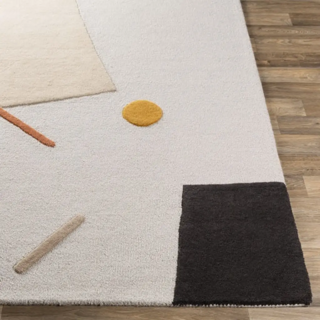 Who said modern art has to stick to the walls? This unique medium pile rug features slightly raised abstract shapes that's sure to compliment any floor it graces.