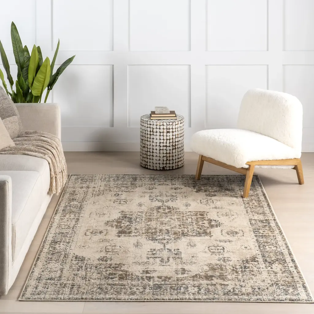 Inspired by the ambiance of vintage elements, this floor covering invites everyone to gather around, cozy up, and decompress. The stunning colors of this area rug are ideal for adding an unexpected element to neutral-toned furnishings while a soft texture calls for hours and hours of comfort. Your oasis awaits you! Elevate your living space with our pet-friendly and easy to clean rugs.