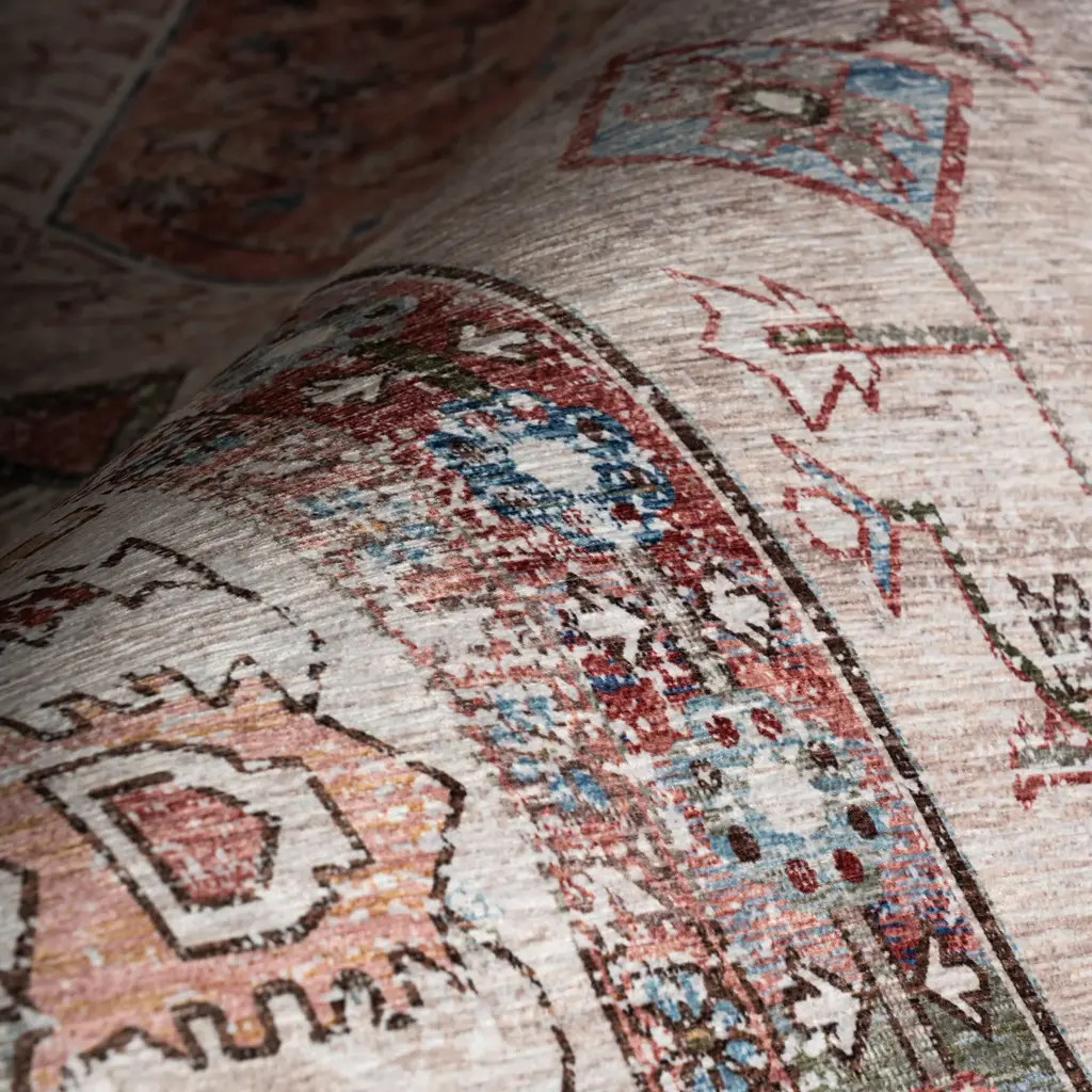 Runic Medallion Spill Proof Washable Rug | Brick - 4' X 6'