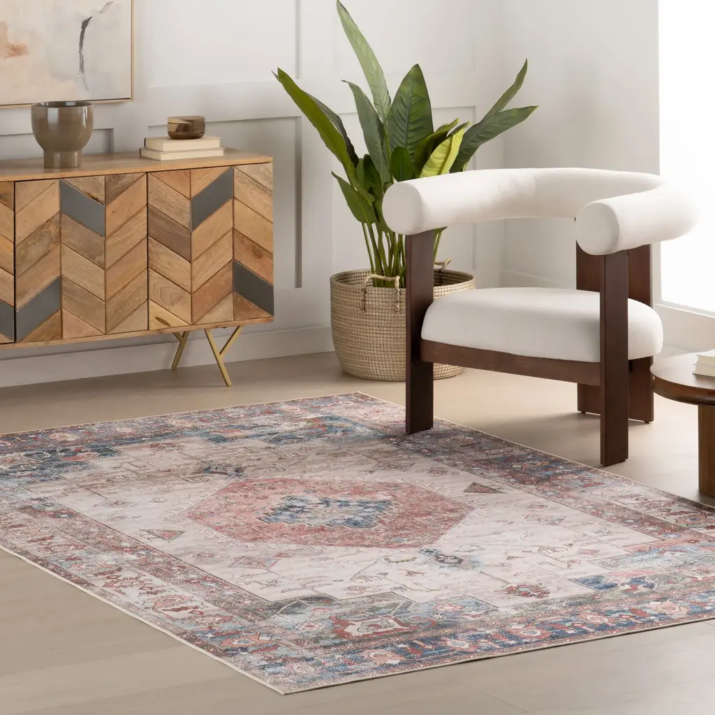 Runic Medallion Spill Proof Washable Rug | Brick - 8' X 10'