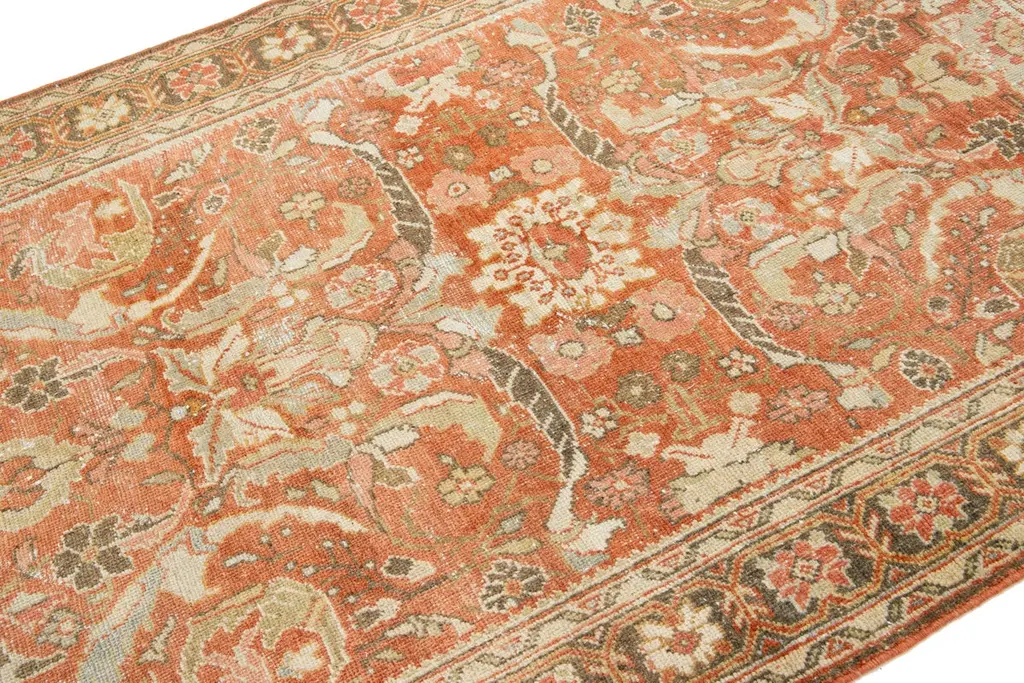 Rust Handmade Persian Mahal Wool Rug Featuring An Allover Pattern
