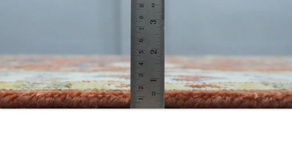 Expertly hand-knotted from high-quality wool, this custom-made Oriental Oushak area rug combines timeless beauty with durability. Boasting shades of rust, ivory, and blue, this rug will add a touch of elegance to any room while providing warmth and comfort underfoot. Made with Wool Color: Rust, Ivory and Blue Made with 22 knots per square inch Sizes are made to order 30-45 days This specific rug is made in India, in the city of Bhadohi. Bhadohi is one of the biggest rug manufacturing cities. Carpet weaving in the region dates back to the 16th century during the reign of Akbar. The skilled artisans of Bhadohi have been carrying the tradition of rug-making for centuries. USERS GUIDE Avoid prolonged moisture Vacuum regularly and/or shake to remove dust Do not pull any loose threads. Use scissors to simply cut the ends Blot spills immediately with a white cloth. Harsh chemicals may damage or fade the rug Use rug protectors under heavy furniture