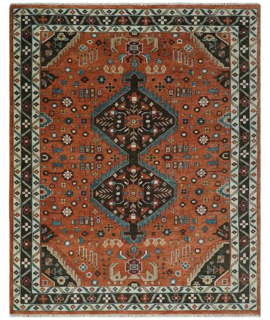 This Hand-Knotted Rust & Brown Colored Oriental Rug has been Made with Handspun Wool. The beautiful colors of the rug carry a legacy of the heirloom rug. The traditional design of the rug completes your space without making it look busy. Hand-Knotted rugs are durable and can last for decades if treated right. Hand-Knotted Sizes are made to order 30-45 days Made with Wool Color: Rust, Ivory, and Brown Made with 25 knots per square inch This specific rug is made in India, in the city of Bhadohi. Bhadohi is one of the biggest rug manufacturing cities. Carpet weaving in the region dates back to the 16th century during the reign of Akbar. The skilled artisans of Bhadohi have been carrying the tradition of rug-making for centuries. USERS GUIDE Avoid prolonged moisture Vacuum regularly and/or shake to remove dust Do not pull any loose threads. Use scissors to simply cut the ends Blot spills immediately with a white cloth. Harsh chemicals may damage or fade the rug Use rug protectors under heavy furniture