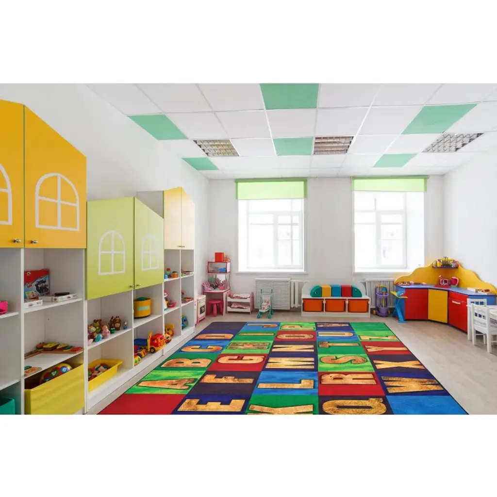 Rustic Alphabet Seating Rectangle Rug with Wood Style Letters for School or Home Learning Spaces Bring warmth, style, and learning together with the Rustic Alphabet Seating Rug—a rectangular educational carpet that combines the charm of wood-grain design with the functionality of alphabet seating. Each block on the rug displays a bold uppercase letter, printed in a rustic wood style over vibrant colored squares, creating a visually stimulating and inviting learning space for children. Ideal for classrooms, homeschool areas, reading corners, and playrooms, this carpet offers both structure and creativity. The large, clearly marked letters provide personal space for seating during group activities, circle time, or phonics lessons, while the cozy and durable surface ensures lasting performance in high-traffic environments. Key Features & Benefits : Origin – Expertly crafted in the USA by Carpets for Kids. Collection – Pixel Perfect Collection, Manufacturer Warranty – Backed by a Lifetime Limited Abrasive Wear Warranty, along with Advanced Anti-Static and Advanced Stain Protection. No Fault Edge Warranty – Rug edges are covered for replacement regardless of wear or age. Just pay one-way shipping—we’ll handle the rest. Multi-Use Functionality – Ideal for story time, circle time, games, and quiet reading zones in both home and school settings. Surface Material – Constructed from commercial-grade cut pile carpet using 100% continuous filament Type 6 and 6/6 nylon, designed to be recyclable and eco-conscious. Face Weight – Durable construction with an 18 oz per square yard face weight ensures reliable performance in busy spaces. Anti-Stain Treatment – Delivers up to 25X stain resistance using True Stain Blocker Technology. Each fiber is fully saturated for deep protection and effortless cleaning with just hot water—no harsh chemicals needed. Backing Material – Built with the patented KIDply® Backing System, providing dimensional stability, wrinkle resistance, and exceptional softness and flexibility. Fire Code Rating – Meets NFPA 253, Class I fire safety standards for added peace of mind.