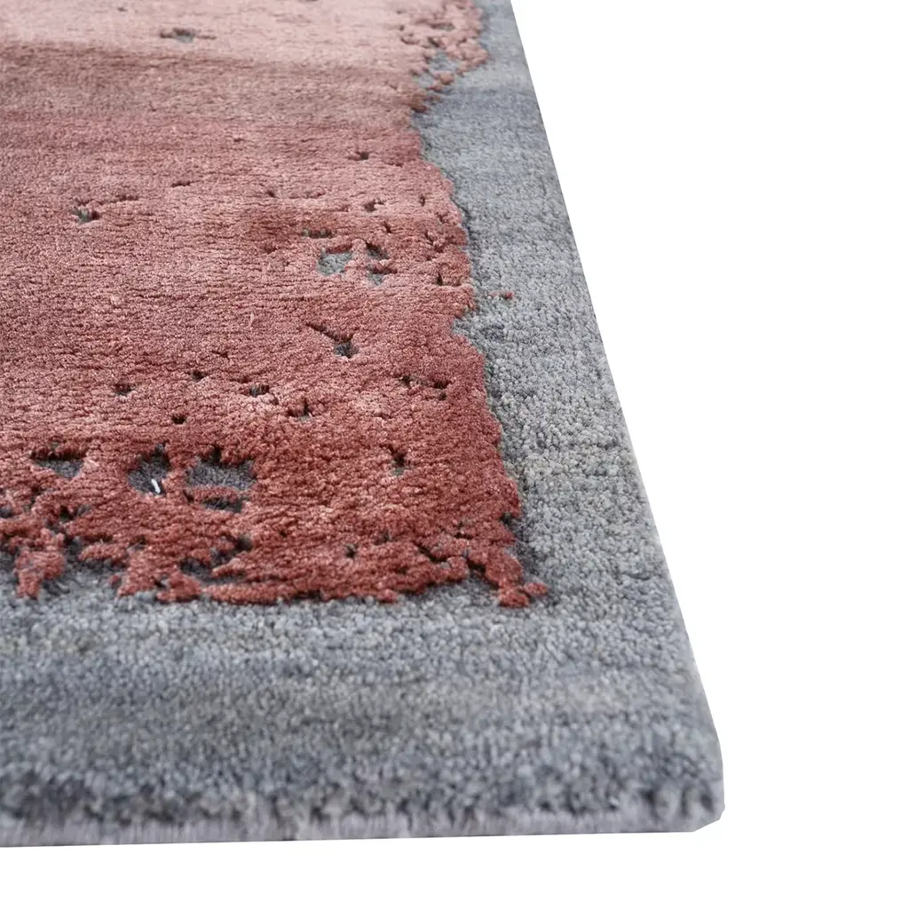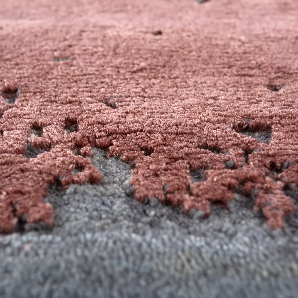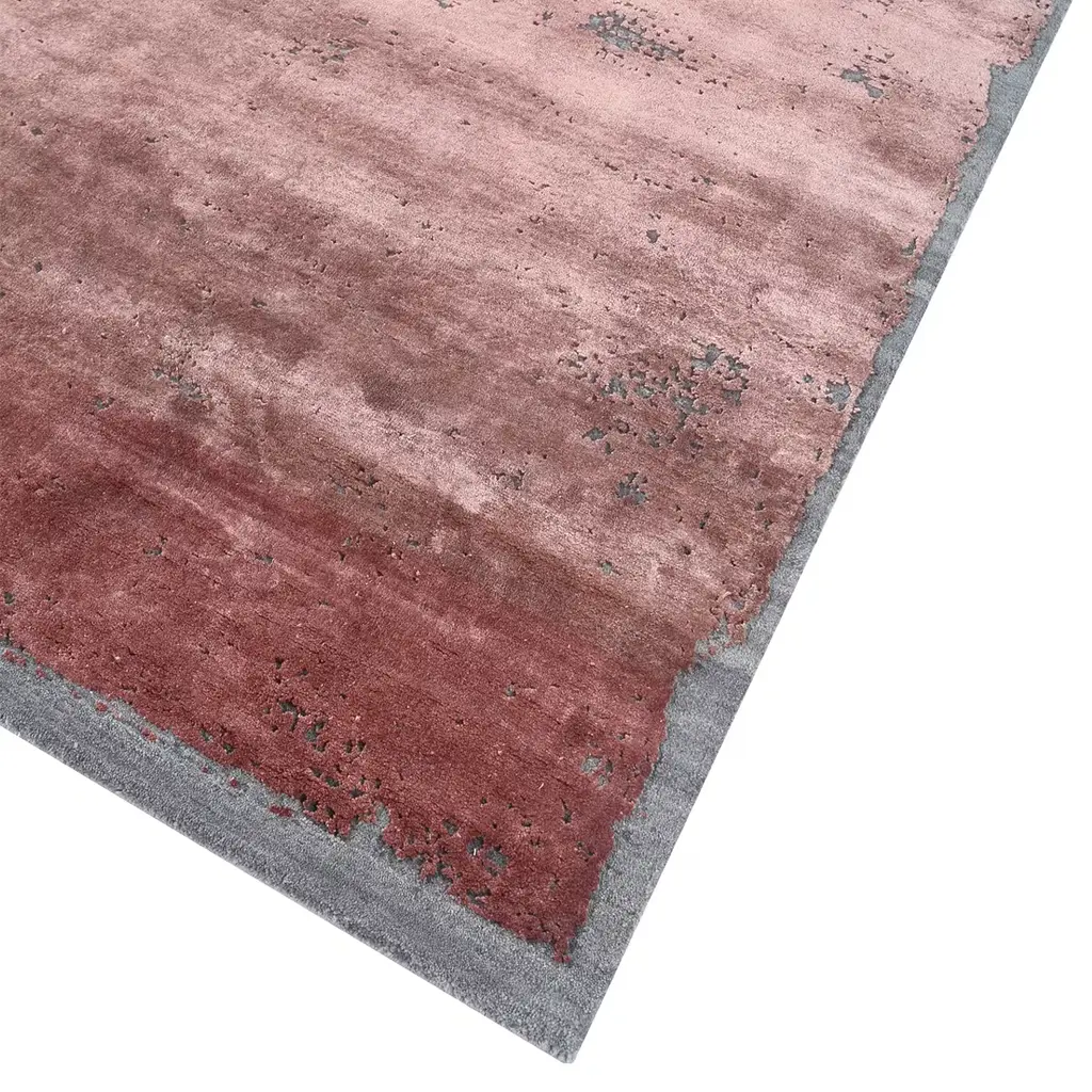Featuring 80% bamboo silk for a lustrous sheen and silky texture, 10% wool for durability and resilience, and 10% cotton for structural integrity and comfort, it offers both luxury and practicality. The pattern is elegantly understated, with gentle tonal variations creating an organic, watercolor-like effect. The rich, muted shades of dusky rose evoke sophistication and warmth. It is available in a range of colors, shapes & sizes.