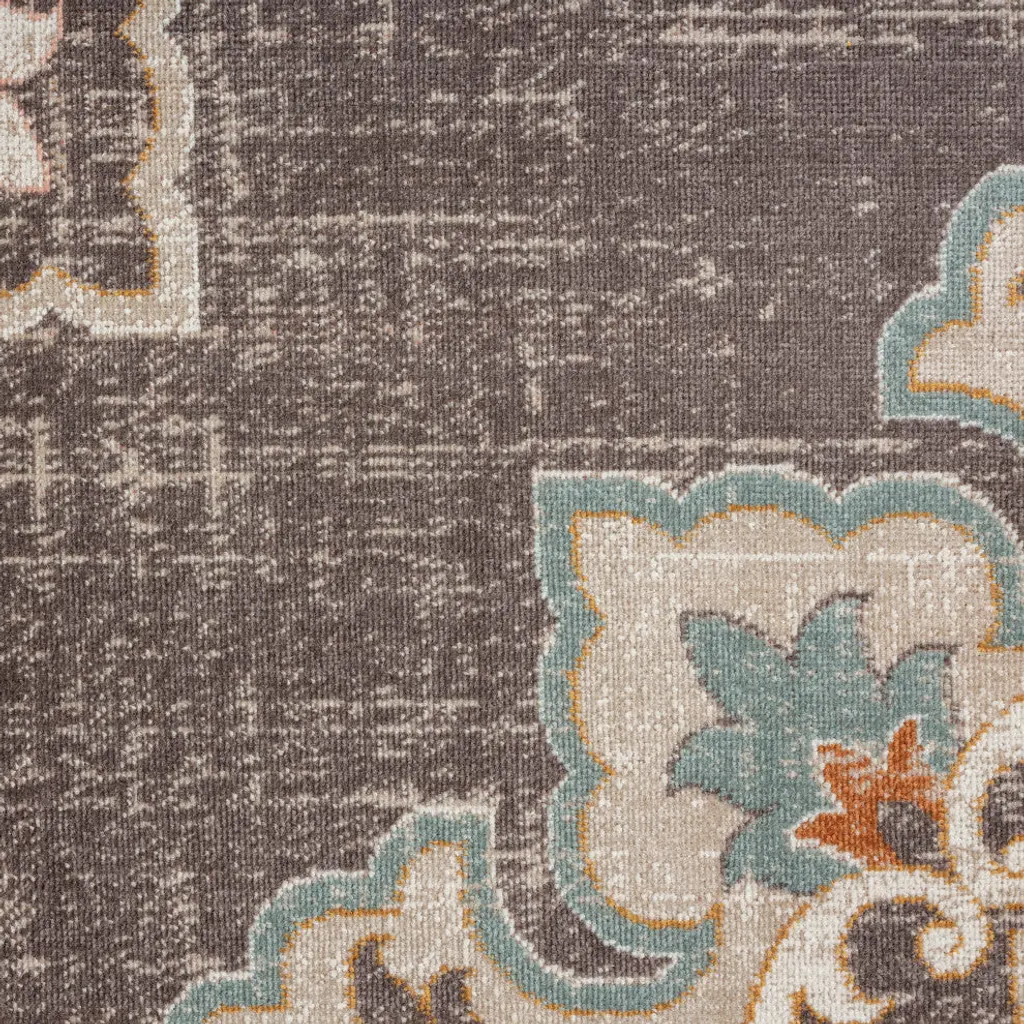 Showcasing a variety of traditional and transitional motifs in modern colors, the Antiquity indoor-outdoor rug collection is quite the impressionist ensemble. This latest addition features eye-catching hues of creamy beige, rust orange, soft peach, and blue-green with a balancing umber brown to bring a classic rustic feel into your space. The distressed abrash background effect highlights the overlayed floral medallion and filigree border beautifully. The interwoven design provides eye-catching colors at every angle with the shifting sheen affect in this must-have rug.