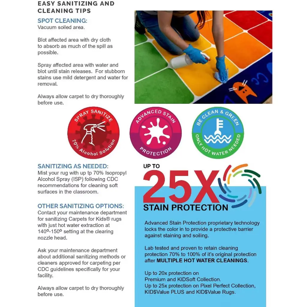 Rustic Wood Gray Literacy Seating Rectangle Rug for Classroom and Home Study Spaces Enhance your child’s learning space with the Rustic Wood Literacy Learning Rug in a stylish gray rectangular design. Perfectly crafted for classrooms, playrooms, or home study areas, this rug offers a comfortable seating area that encourages literacy and learning. Featuring a charming rustic wood pattern, it creates a warm and inviting atmosphere while providing a durable, soft surface for kids to sit and engage with educational activities. Easy to clean and maintain, this rug is designed to support your child’s reading and interactive playtime with style and function. The rug is carefully crafted from high-quality, stain-resistant materials that can withstand daily wear and tear in busy environments like preschools, elementary classrooms, libraries, and home learning spaces. Its soft yet durable surface provides a comfortable space for children to sit, read, and engage in group activities. Each seating area is thoughtfully defined to help maintain order during storytime or group lessons, fostering better classroom management and a more structured environment. Key Features & Benefits : Origin: Proudly manufactured in the USA by Carpets for Kids. Collection: Pixel Perfect Collection. Rustic Wood Design: Unique wood-inspired pattern adds a cozy, natural feel to any learning space. Face Weight: Constructed with a durable 18 oz/sq-yd surface density for long-lasting use. Surface Material: Made from commercial-grade cut pile carpet using 100% continuous filament Type 6 & 6/6 nylon, fully recyclable for eco-conscious consumers. Anti-Stain Treatment: Provides up to 25 times the stain protection with True Stain Blocker Technology. Easy to clean using only hot water extraction—no harsh chemicals required. Each fiber is fully saturated with stain protection. Backing Material: Features the patented KIDply Backing System for superior dimensional stability. Prevents wrinkling and creasing while delivering exceptional softness and flexibility. Fire Code Rating: Complies with NFPA 253, meeting Class I fire safety standards for safe use in schools and homes. Rectangle Shape: Spacious gray rug that fits well in classrooms, playrooms, and home study areas. Comfortable Seating: Soft, cushioned surface provides a comfortable spot for kids during storytime or learning activities. Durable & Easy to Clean: High-quality materials and anti-stain technology ensure durability and hassle-free maintenance. Manufacturer’s Warranty: Includes a Lifetime Limited Abrasive Wear Warranty, Advanced Anti-Static and Stain Protection, and the No Fault Edge Warranty. No Fault Edge Warranty: Edging will be replaced at any time, regardless of wear or age—just cover one-way shipping.
