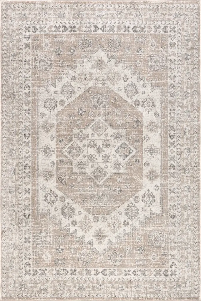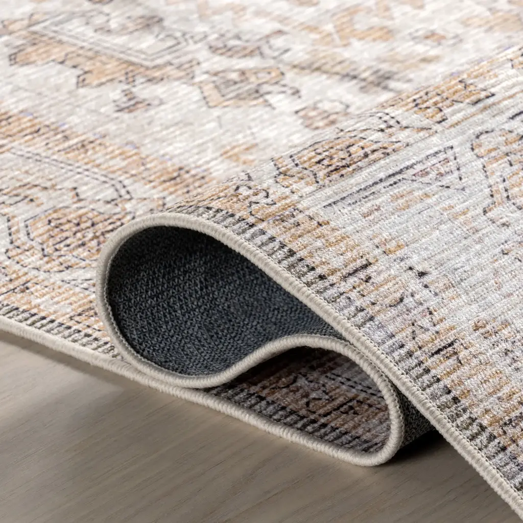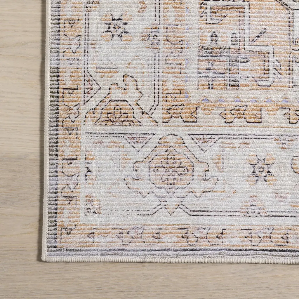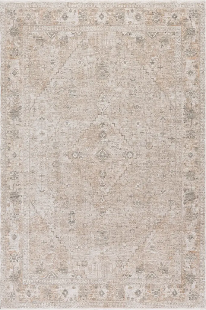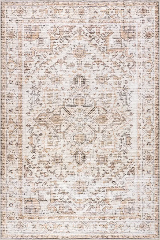Rylan Medallion Spill Proof Washable Rug | Beige - 9' X 12'