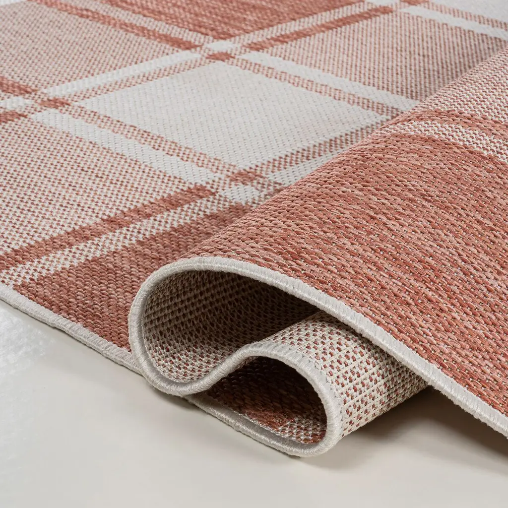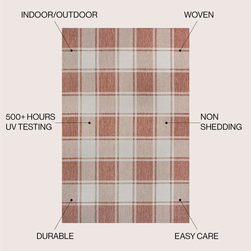 Our updated version of a classic gingham rug is inspired by traditional cottage designs. It's made from durable polypropylene fibers woven into a large scale pattern. Use this easy-care rug outdoors on a porch, or in the bedroom, living room or dining room.