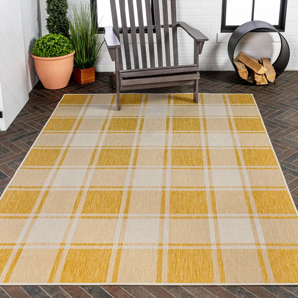 Our updated version of a classic gingham rug is inspired by traditional cottage designs. It's made from durable polypropylene fibers woven into a large scale pattern. Use this easy-care rug outdoors on a porch, or in the bedroom, living room or dining room.