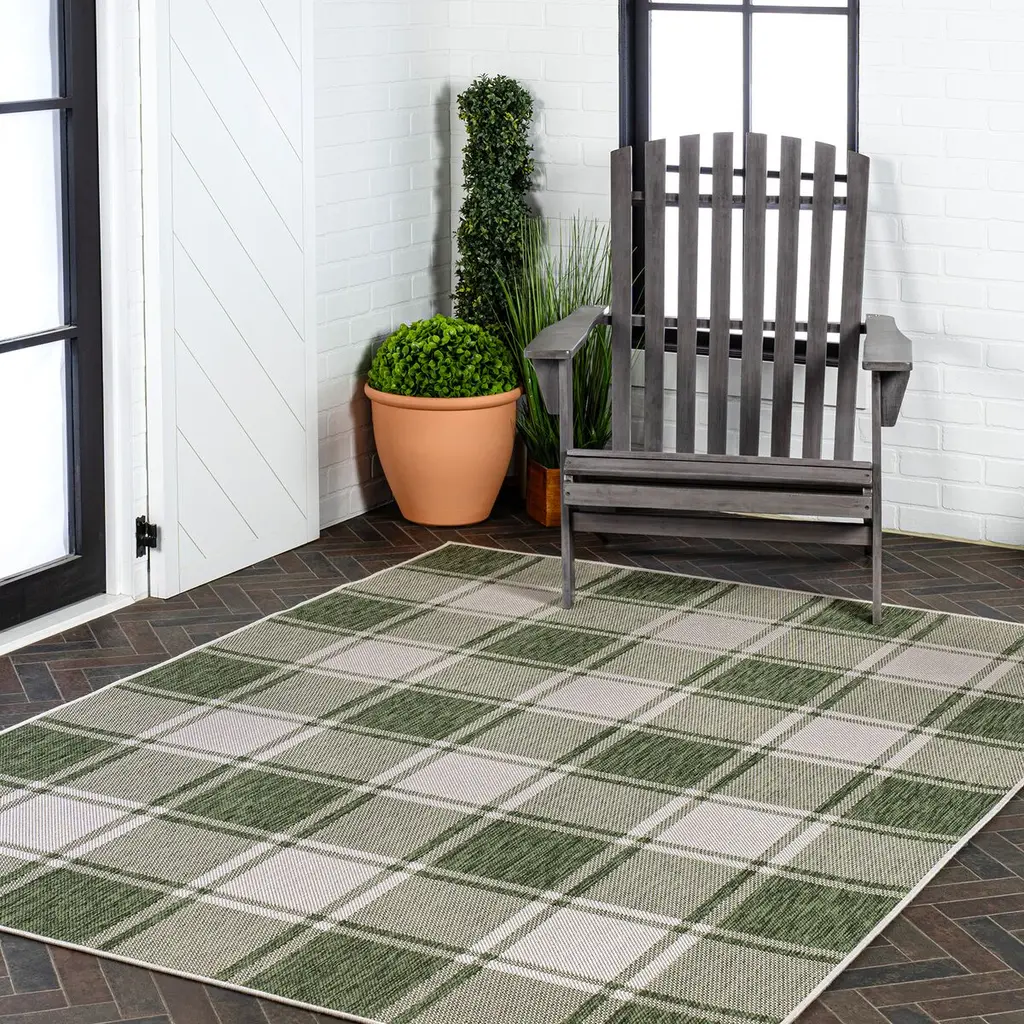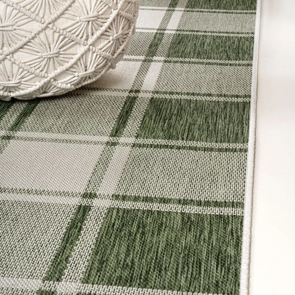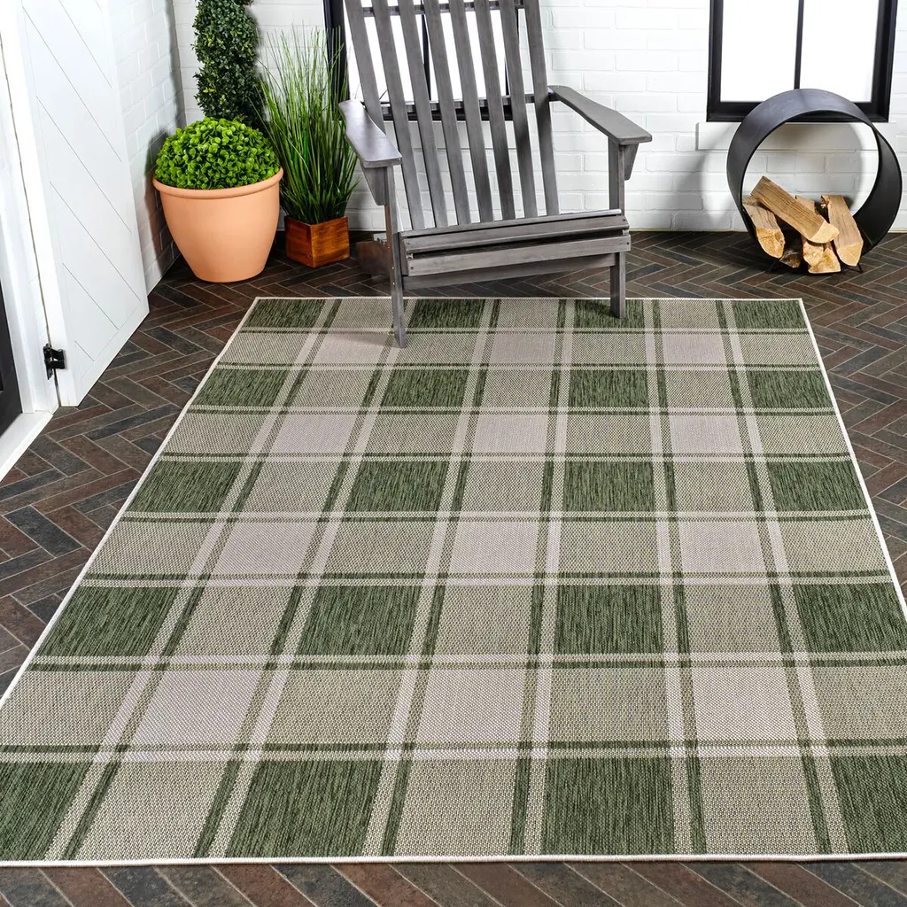 Our updated version of a classic gingham rug is inspired by traditional cottage designs. It's made from durable polypropylene fibers woven into a large scale pattern. Use this easy-care rug outdoors on a porch, or in the bedroom, living room or dining room.