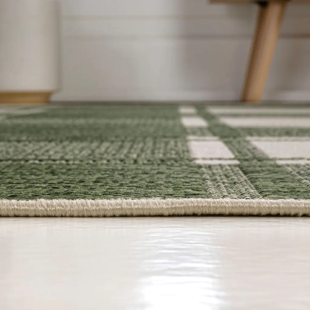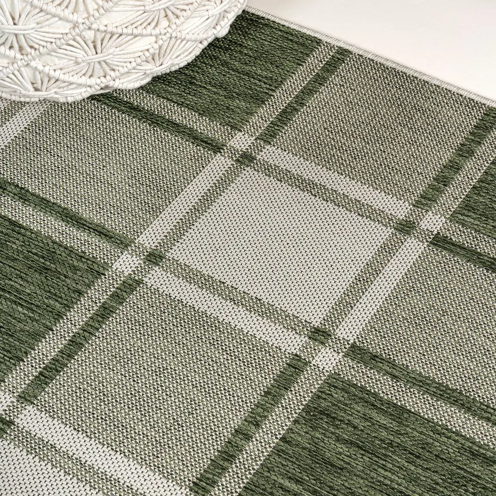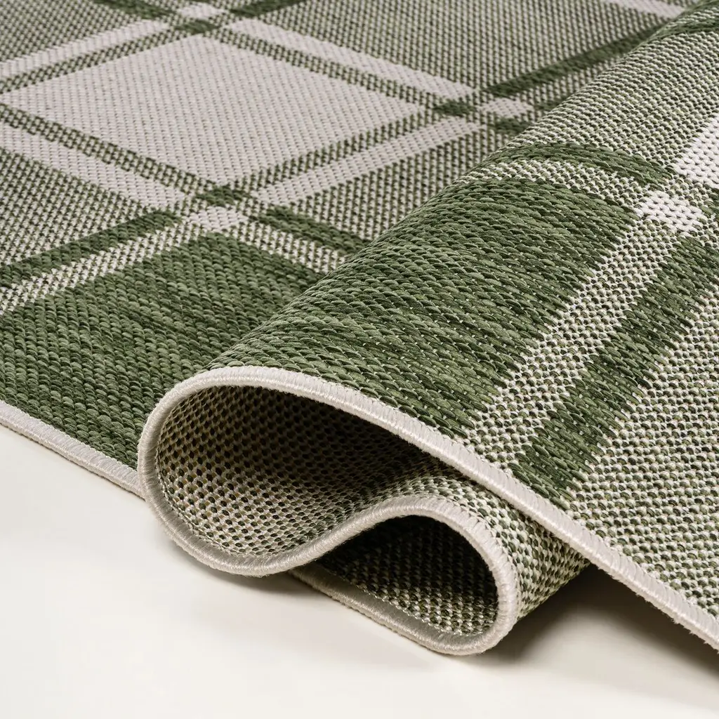 Our updated version of a classic gingham rug is inspired by traditional cottage designs. It's made from durable polypropylene fibers woven into a large scale pattern. Use this easy-care rug outdoors on a porch, or in the bedroom, living room or dining room.