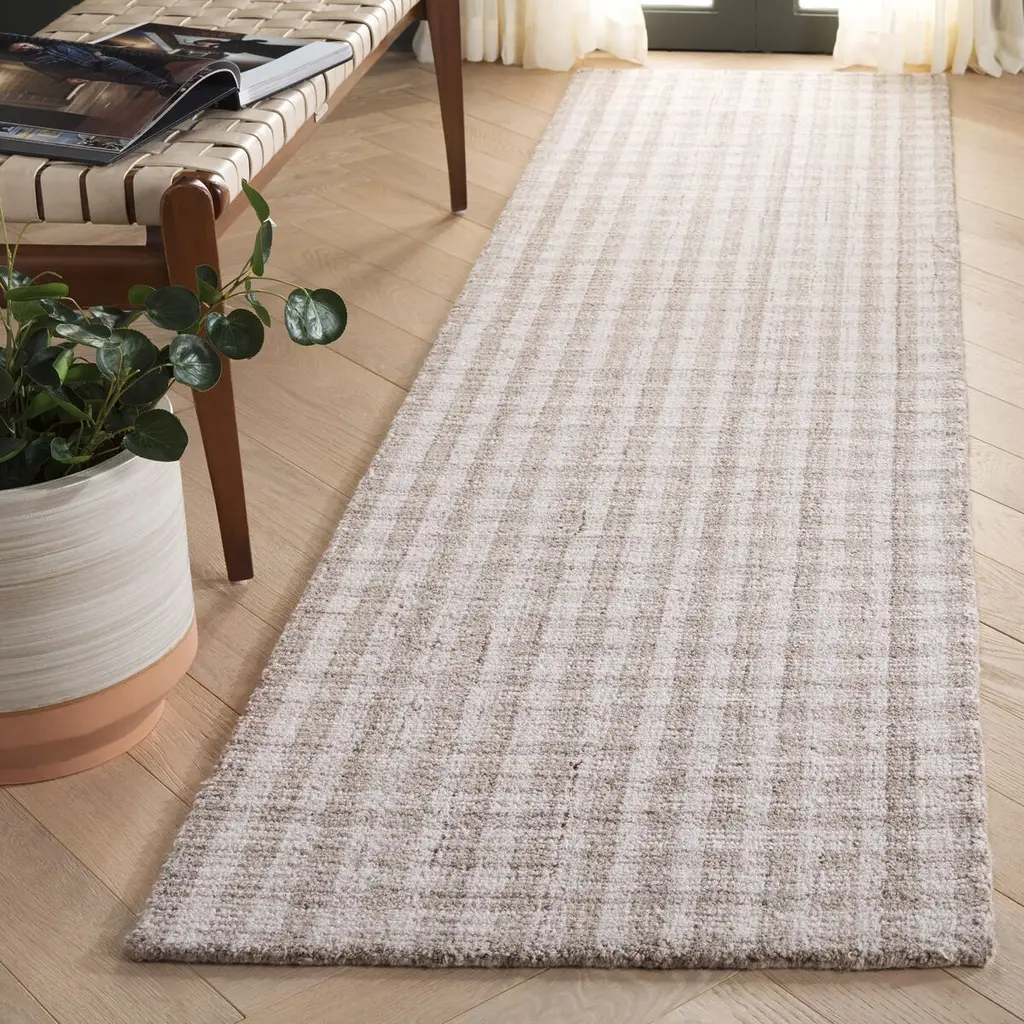 Discover the essence of modern comfort with our hand tufted area rug, meticulously crafted in India to bring a touch of elegance and warmth to your living space. Sized at a generous 9 feet by 12 feet, this large rectangle rug is an ideal choice for anchoring your room with its substantial presence. Featuring a plush 3/8 inch height, the rug boasts a blend of 85% Wool and 15% Cotton, offering an exquisite balance of durability and softness. Its luxurious beige and ivory hues create a serene and inviting atmosphere in any room, while the understated grid pattern adds a subtle texture that enhances its contemporary style. This rug's pleasing palette and timeless design make it a versatile addition to your home. Whether you're looking to complement your minimalist decor or add a neutral base to a more eclectic aesthetic, this area rug promises to infuse your space with sophistication and comfort.
