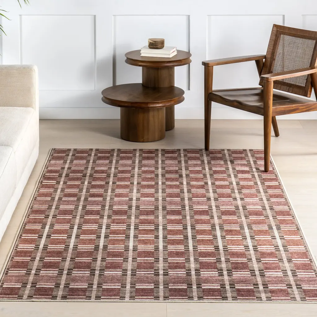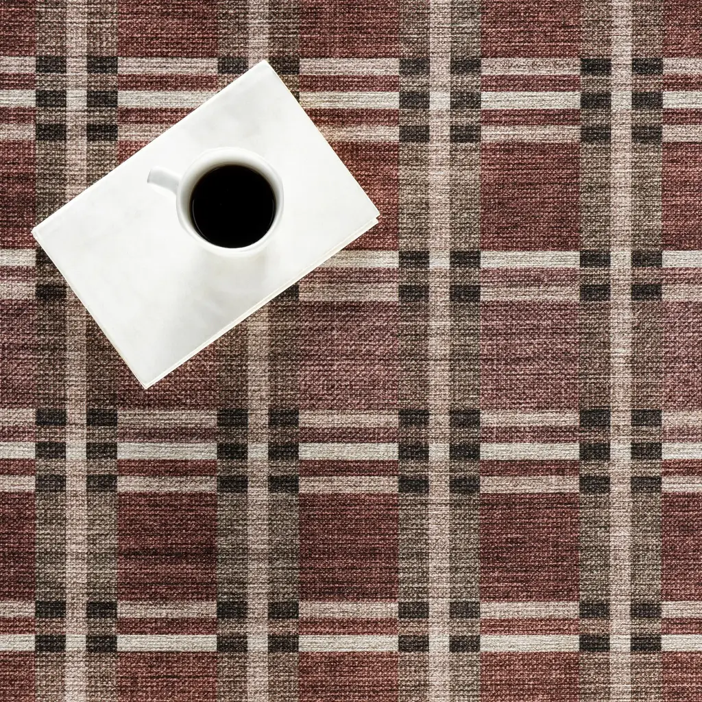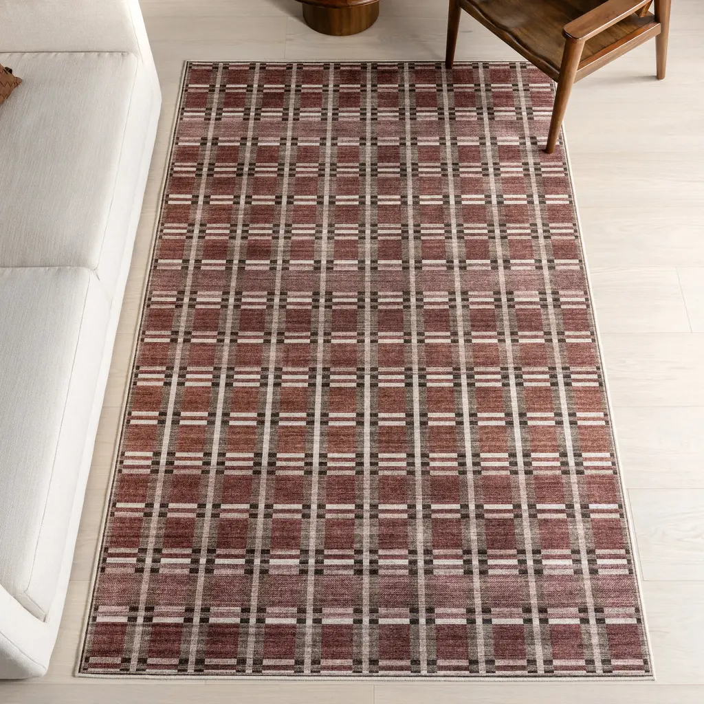 Sacha Plaid Spill Proof Washable Rug | Rust - 5' X 8'