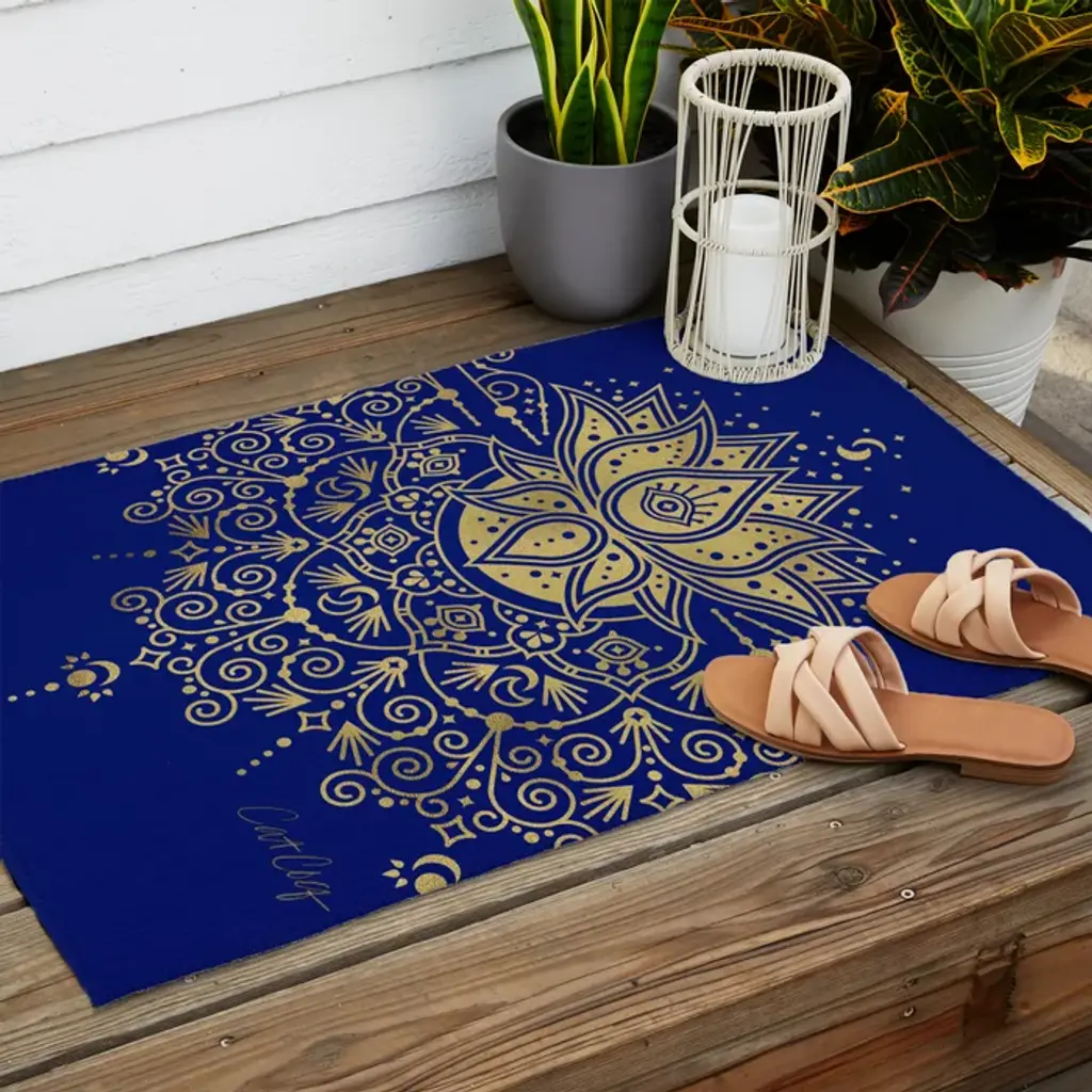 Sacred Lotus Mandala – Navy & Gold Palette Outdoor Rug
