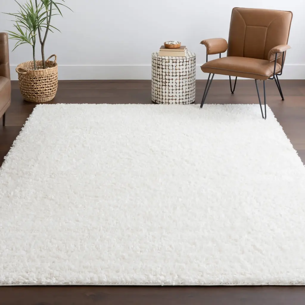 Sade Solid Shag Rug | Ivory - 2' 8" X 6'