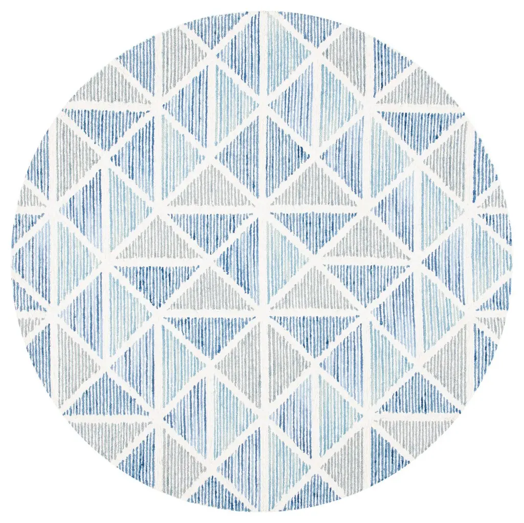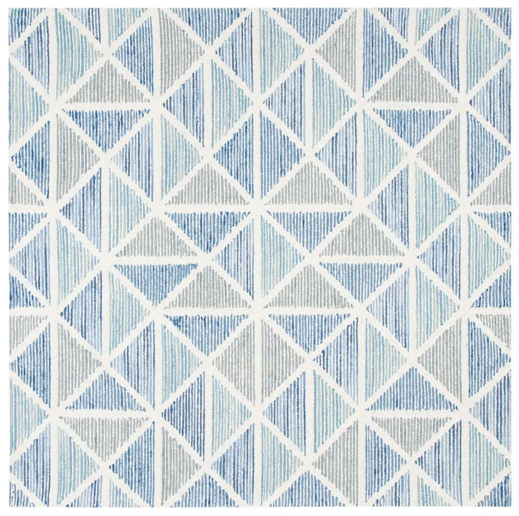 Elevate your space with this exquisite 4' X 6' Small Rectangle area rug, showcasing a harmonious ivory and blue color palette. Hand-tufted in India, it boasts a plush 1/4" pile height, crafted from a luxurious blend of 80% wool and 20% cotton for a soft yet durable texture. The contemporary style is reflected in the rug's captivating geometric pattern, featuring crisp lines and a dynamic interplay of shades, sure to complement modern decor sensibilities. Please note, this sophisticated piece is not washable and should be spot-cleaned only for upkeep. Its aesthetic allure is unmatched, but keep in mind it is not slip-resistant, so a rug pad is recommended for added stability. Transform your room into a statement of elegance with this artisanal masterpiece.