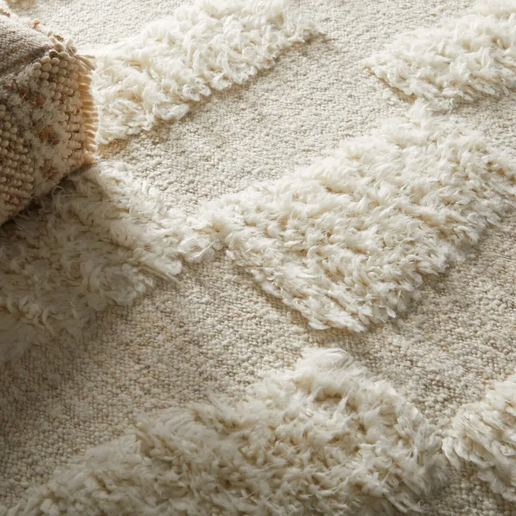 Hand-woven in India of natural, undyed wool, the Saena Collection offers a series of understated neutrals that feel relaxed yet refined. Saena has both contemporary style along with transitional elements, featuring subtle patterns paired with abstract geometric designs to mimic express quality of hand drawings. This stunning collection is presented in a muted color palette making Saena is a timeless choice for any room.