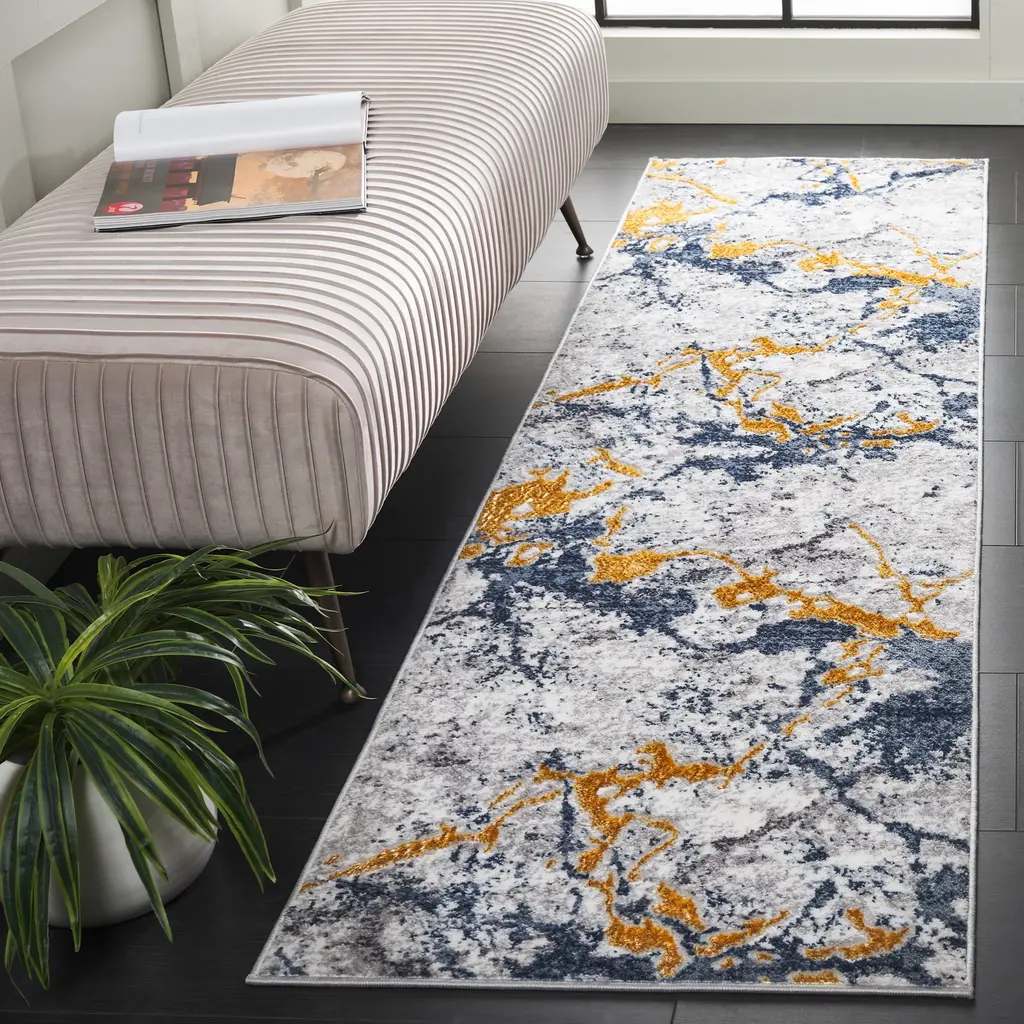 The Amelia Rug Collection features contemporary styled floor coverings in dreamy patterns, decor-smart tonal colors and plush textures. Amelia rugs are made using soft synthetic yarns, with a textured finish that conveys an alluring, dimensional look in room decor. A smart choice for modish living rooms, the family room, or bedroom. Features:Stain Resistant & Non-Shedding: Machine-woven from enhanced synthetic fibers for virtually no shedding and stain resistanceKid and Pet-Friendly: Safe for high-traffic areas of the home and conveniently kid approved and pet-friendly for life's unpredictable messesTrendy Style: Design beautifully enhances any room of the home, from the living room, dining room, bedroom, entryway, nursery, dorm room, study, home office, or eat-in kitchenEasy Maintenance & Durable: Stress-free cleaning includes regular vacuuming and gently blotting out minor stains with a mild detergent or carpet cleanerMedium Pile Height: Pile thickness is 0.4 inches for a soft feeling underfoot and for seamless placement underneath furniture or in entrywaysFeatured in SAFAVIEH's Amelia Collection