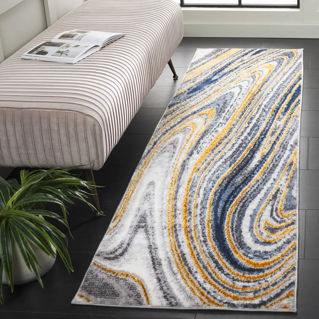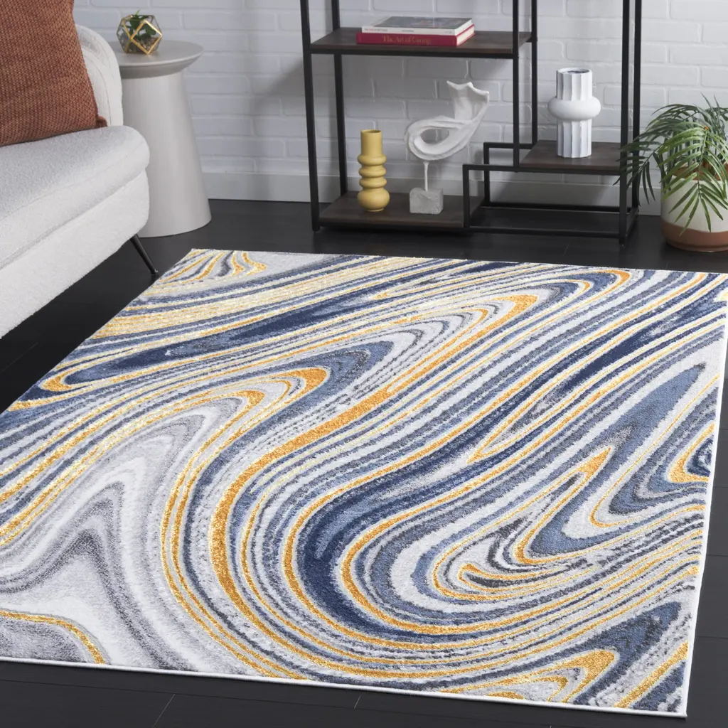 Safavieh Amelia Kamma Modern & Contemporary Rug - 5'3" X 7'6" - Blue/gold - Rectangle