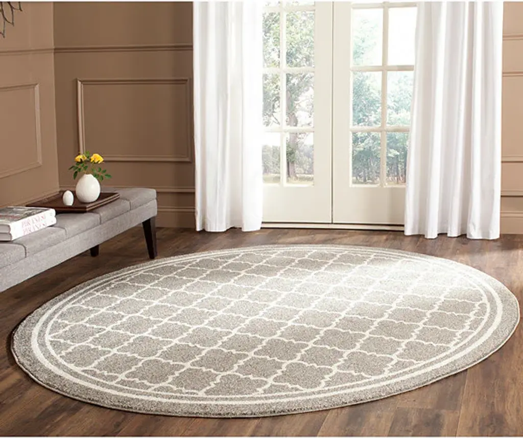Muted tones help to form the gentle designs of Safavieh Amherst rugs. Perfect for filling a space with elegance, these pieces suit a wide variety of decor, but they are particularly useful for adding a sense of transitional style areas such as the living room, dining room, or bedroom. Power loomed from polypropylene, Amherst area rugs can survive even the toughest weather conditions, making them perfect for outdoor use.