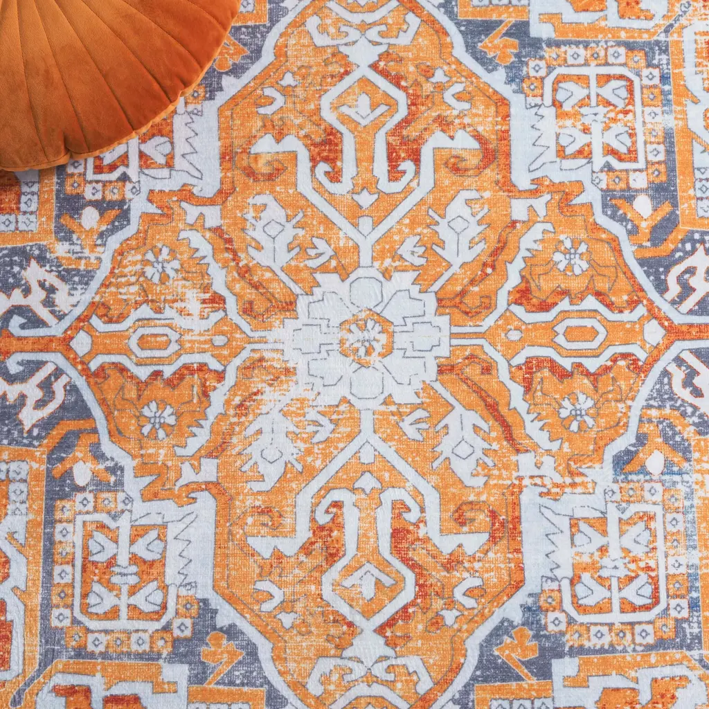 A stunning fusion of bohemian style and oriental patterns, the rugs in SAFAVIEH's Arizona Collection are a must-have for anyone looking to make a statement in their home. These rugs are machine washable and slip resistant, making them perfect for busy households that necessitate both style and practicality. The distressed look of the rugs adds a trendy edge to the traditional oriental patterns, creating a unique and captivating design.Features:Pile height is less than 0.25 inchesModern & Contemporary StyleChic PatternWeave Type: Machine-MadeMade from polyester fibers with a slip resistant backingKid and pet-friendlyStress-free cleaning includes regular vacuuming and gently blotting out minor stains with a mild detergent or carpet cleaner; Machine wash with cold water (do not use bleach); Line drying is recommended; Use an air-dry only cycle; Larger rugs may require washing in a commercial-laundromat size front-load machineFeatured in SAFAVIEH's Arizona CollectionFor over 100 years, SAFAVIEH has been crafting rugs of the highest quality and unmatched style.