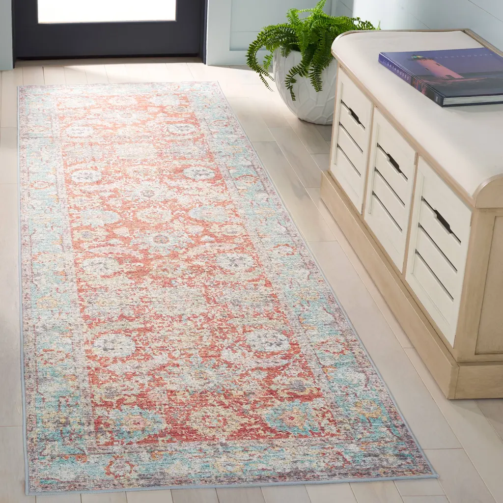 A stunning fusion of bohemian style and oriental patterns, the rugs in SAFAVIEH's Arizona Collection are a must-have for anyone looking to make a statement in their home. These rugs are machine washable and slip resistant, making them perfect for busy households that necessitate both style and practicality. The distressed look of the rugs adds a trendy edge to the traditional oriental patterns, creating a unique and captivating design.Features:Pile height is less than 0.25 inchesModern & Contemporary StyleChic PatternWeave Type: Machine-MadeMade from polyester fibers with a slip resistant backingKid and pet-friendlyStress-free cleaning includes regular vacuuming and gently blotting out minor stains with a mild detergent or carpet cleaner; Machine wash with cold water (do not use bleach); Line drying is recommended; Use an air-dry only cycle; Larger rugs may require washing in a commercial-laundromat size front-load machineFeatured in SAFAVIEH's Arizona CollectionFor over 100 years, SAFAVIEH has been crafting rugs of the highest quality and unmatched style.